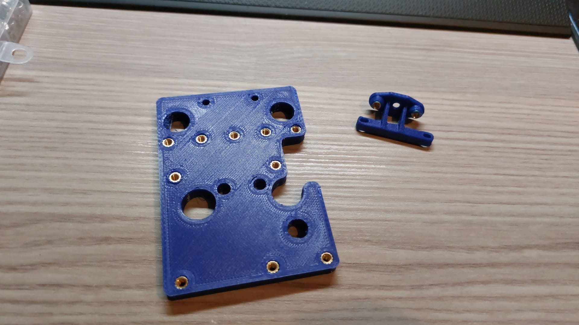 - Gắn heatset inserts vào các vị trí thích hợp (xem ảnh E6 backplate với 10 heat set inserts đã gắn):