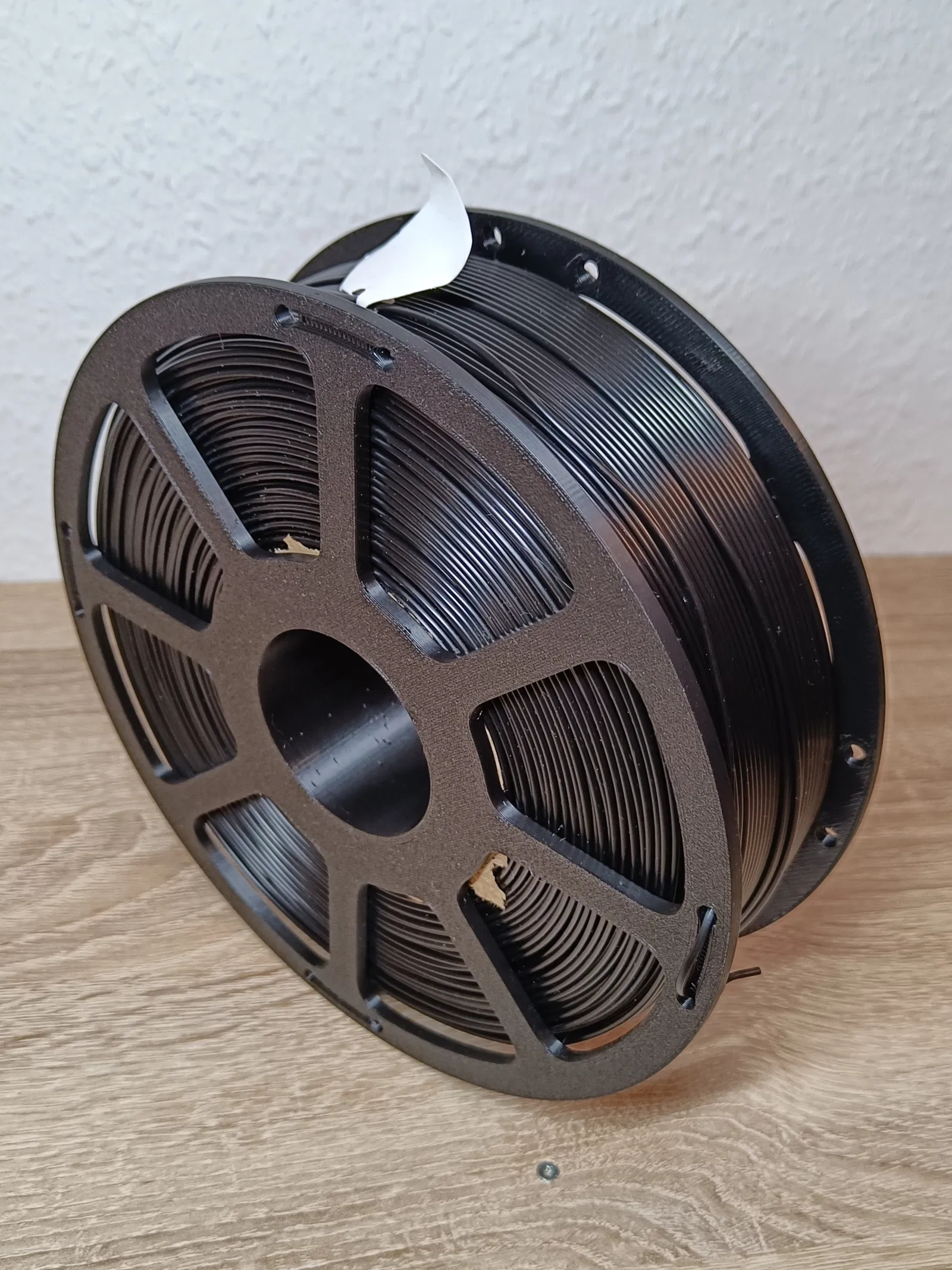Cái spool này cần khoảng 140 tới 155 gram filament, đổ 15% infill, nên nó không có nhẹ mà khá là chắc chắn và chạy mượt. Đến giờ thì gắn vô lõi spool nào cũng vừa khít hết.