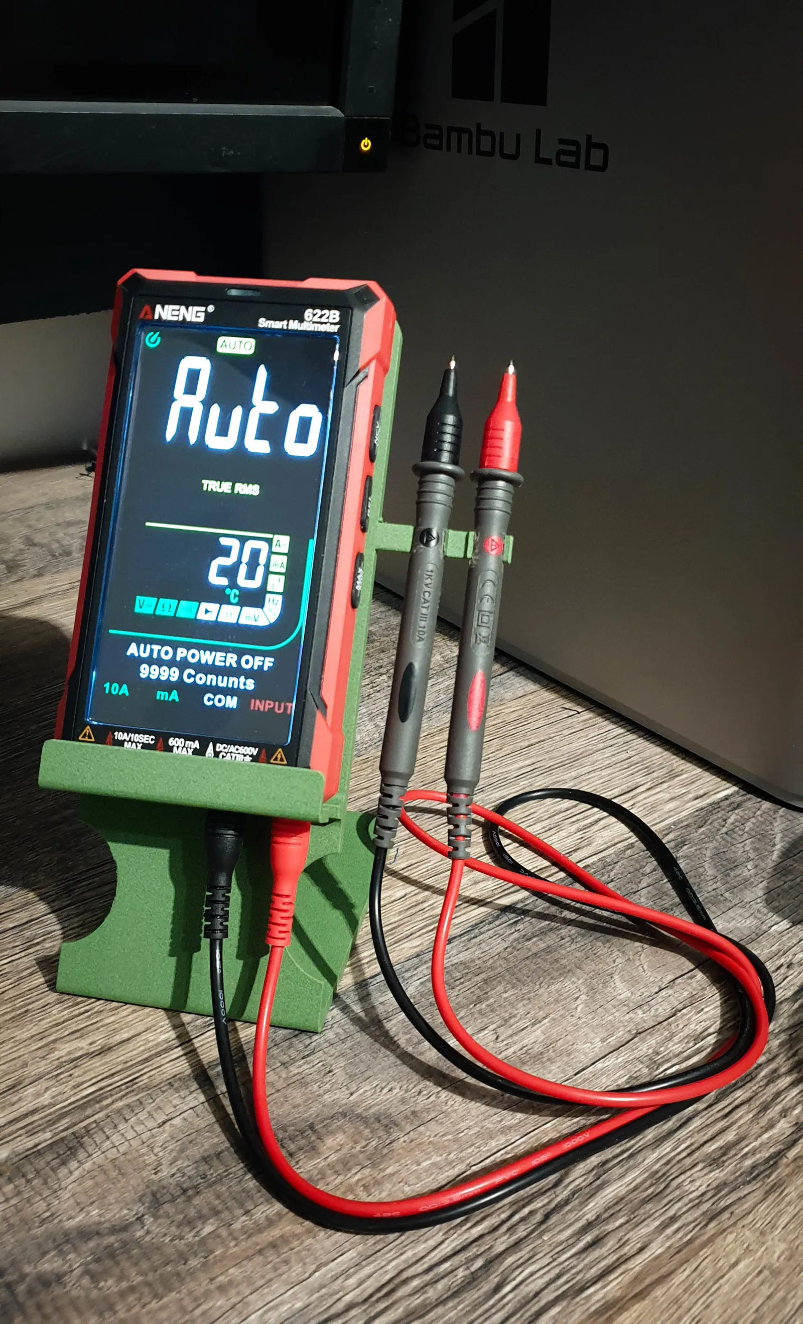 Cái đế để bàn này là chân ái cho cái đồng hồ đo Aneng 622B. Có kẹp để giữ đầu dò chắc chắn hơn, in nghiêng với support là xài bao bền luôn.
