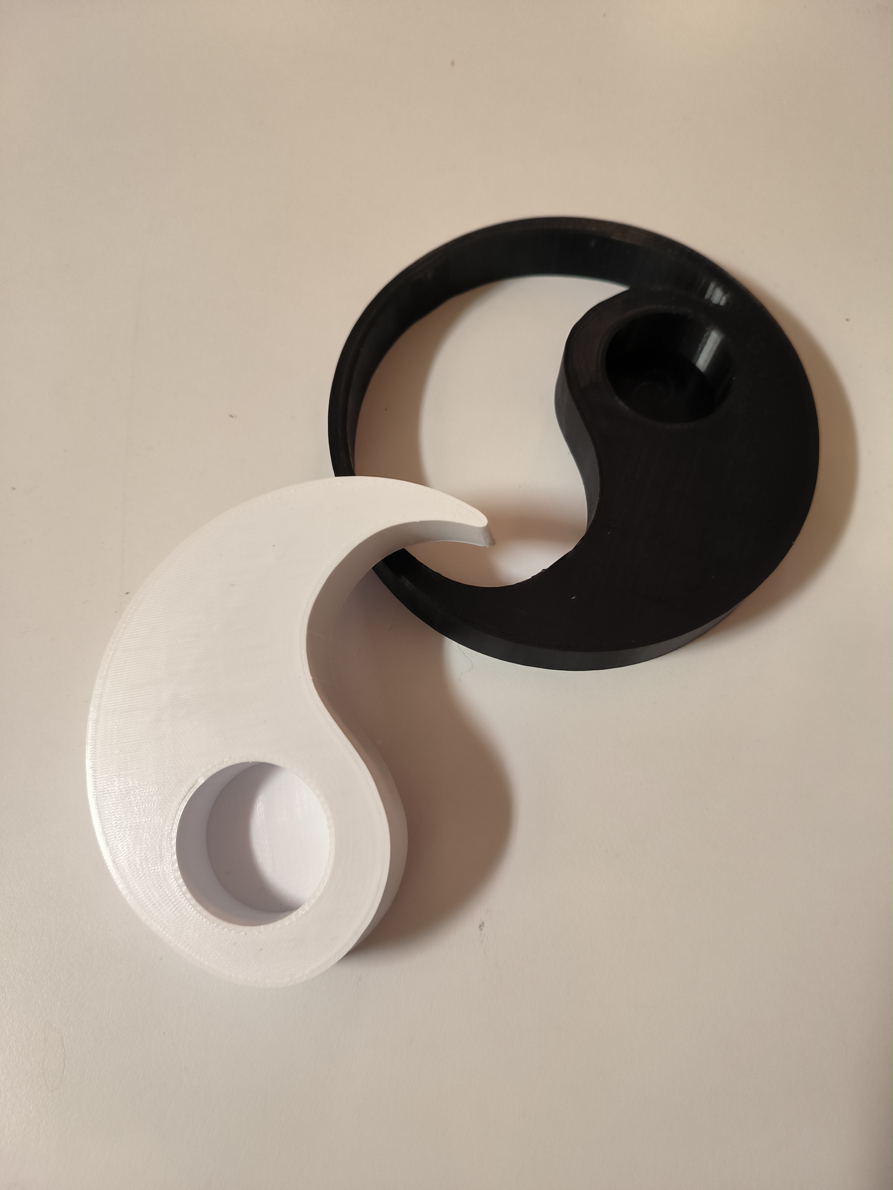 Mô hình đèn nến Âm Dương 2 phần, thích hợp để in 1 màu đen và 1 màu trắng. Thiết kế vừa khít cho nến tealight kích thước 38x19 mm, đảm bảo không bị rơi ra. In ấn với 5% mật độ ruột gyroid.