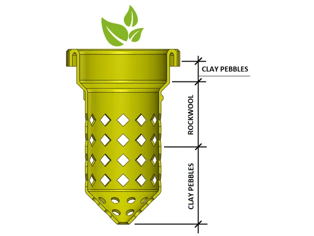 - Giỏ lưới tùy chỉnh với đường kính bên trong 48 mm cho giá thể khác (rockwool + sỏi nhẹ)