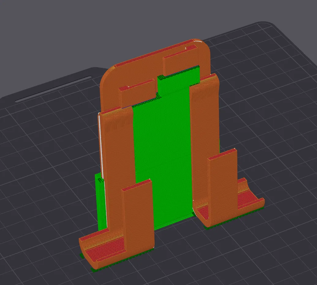 Hiển nhiên là cái mẫu này có mấy chỗ hình học hơi khó in một chút, tui in ngon nhất là để nó đứng thẳng (như lúc gắn lên headset) nè, tui có đính kèm hình chụp màn hình từ slicer của tui để anh em tham khảo.