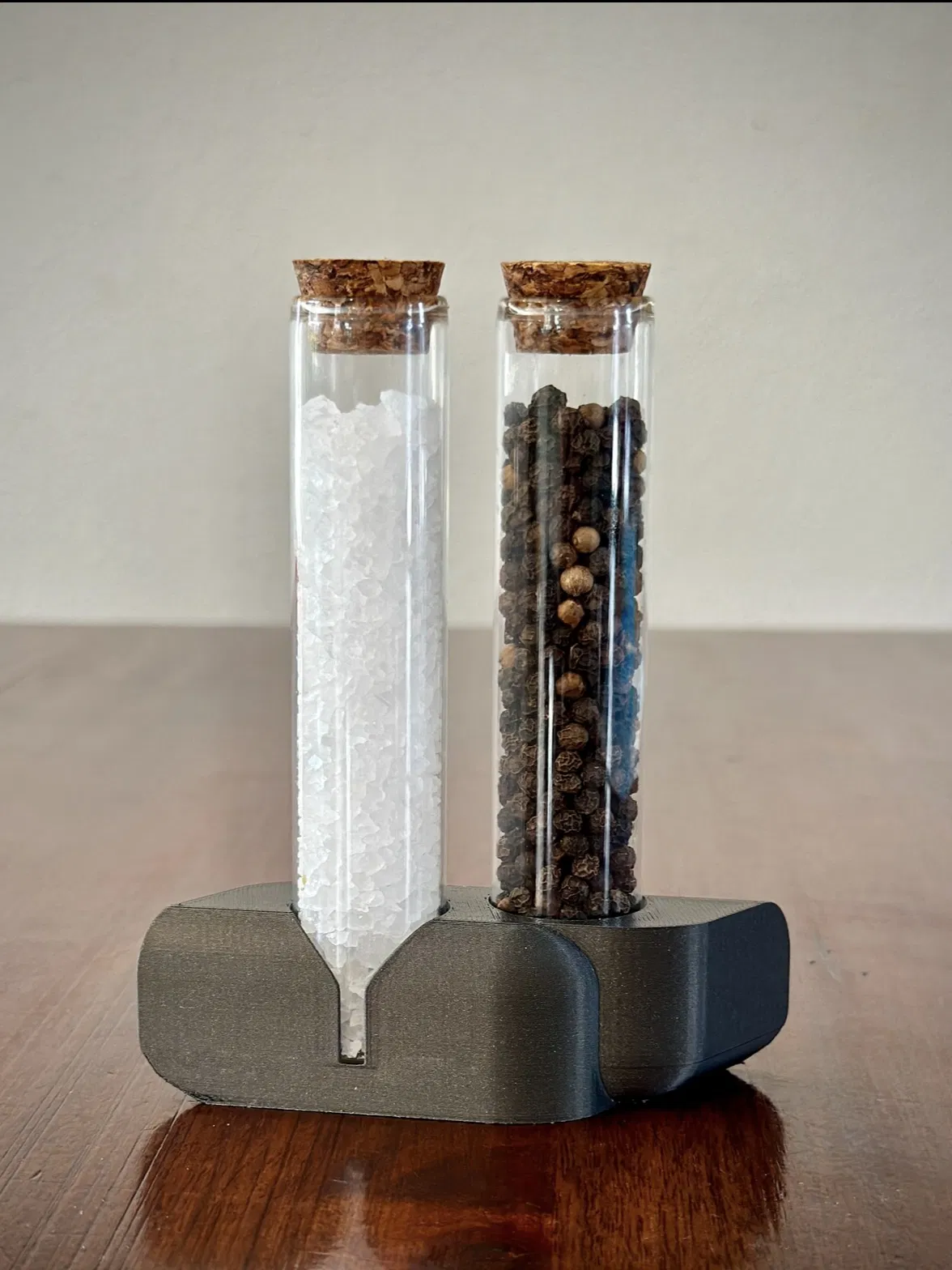 Cái kệ gia vị trừu tượng, đơn giản này có thể đựng được hai hủ đựng gia vị. Tui thiết kế lỗ khoét là 26mm cho hủ 25mm nên hơi lỏng, bạn có thể scale xuống 97-99% cho vừa nha.