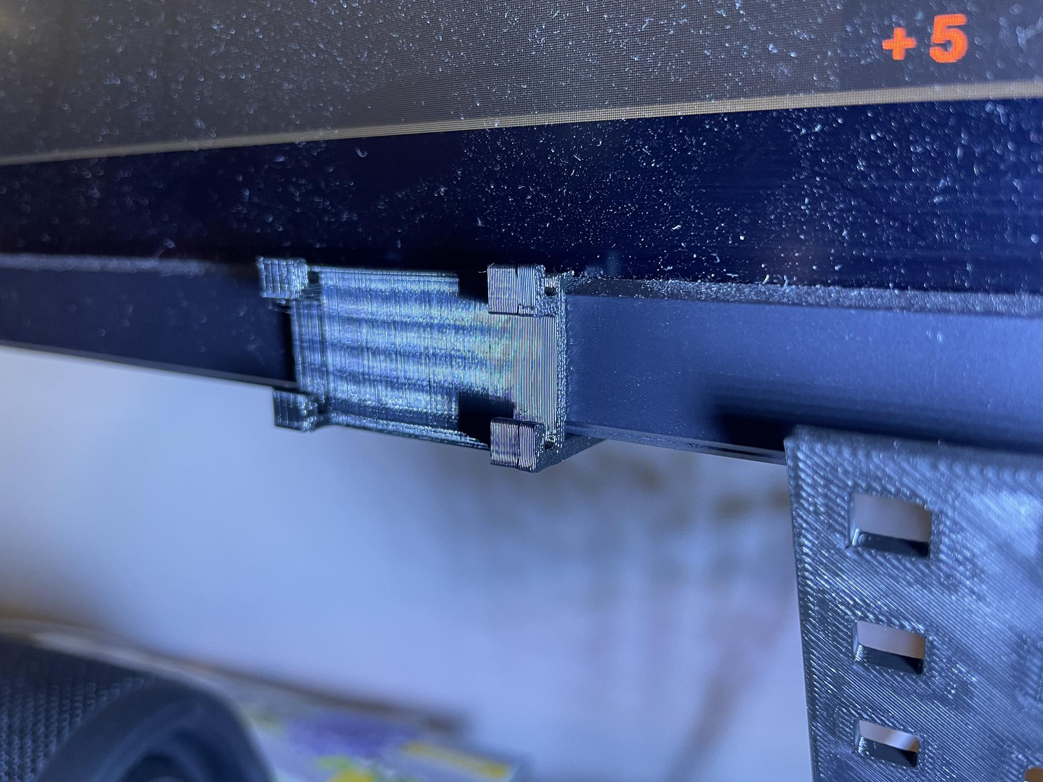 Đây là một cái kẹp gắn vào cạnh dưới của màn hình DELL, có 4 cái móc kiểu bảng ghim P1P úp ngược. Bạn có thể lồng một tấm bảng ghim P1P vào và treo bất cứ thứ gì bằng các móc ở mặt kia. Tôi khuyên bạn nên in hai cái và đặt tấm bảng ghim vào giữa chúng, vì nó có xu hướng bị xệ về một bên nếu tải trọng không đều.