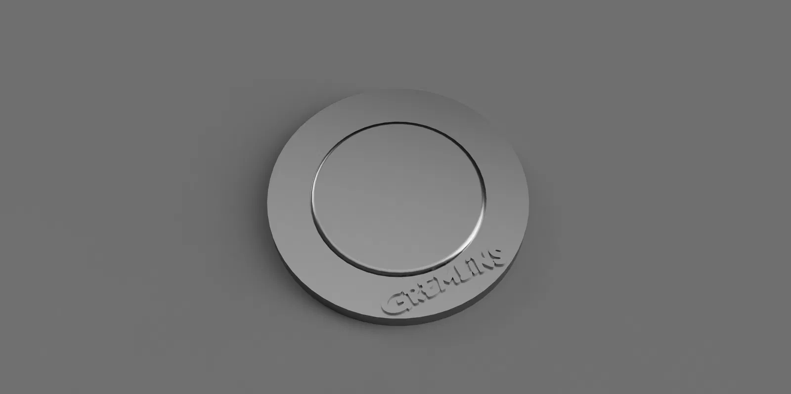 Chân đế hai tầng cho mô hình Gremlin Gizmo, với hai chiều cao 90mm và 10mm, đường kính 111mm và 75mm. Bao gồm logo "GREMLINS" nổi.