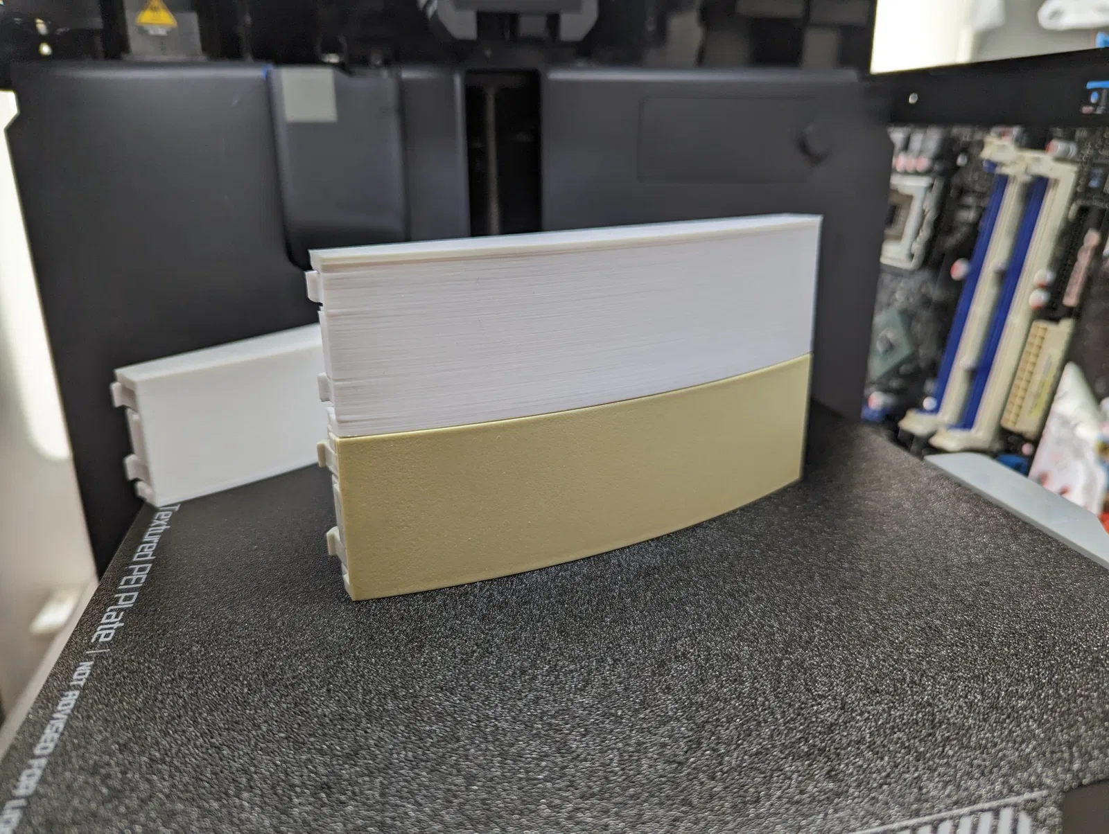 Đây là các bản sao của nắp khoang ổ đĩa 5.25 inch của thùng máy Virgo ATX vì những cái trong dự án phục hồi của tôi đã hơn 15 năm tuổi và ngay cả sau khi retrobriting, vẫn bị biến màu nghiêm trọng, có lẽ do chủ sở hữu trước đó là một người hút thuốc nặng.