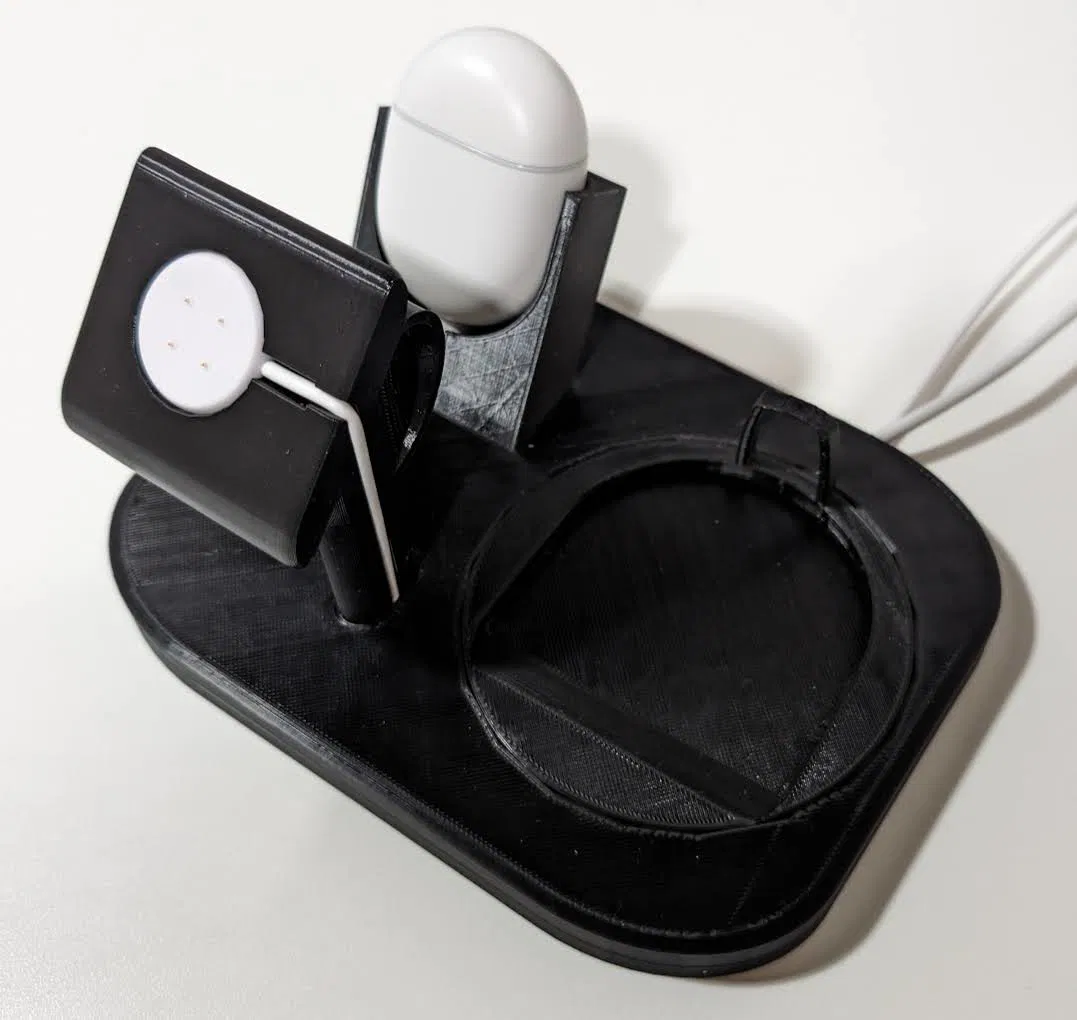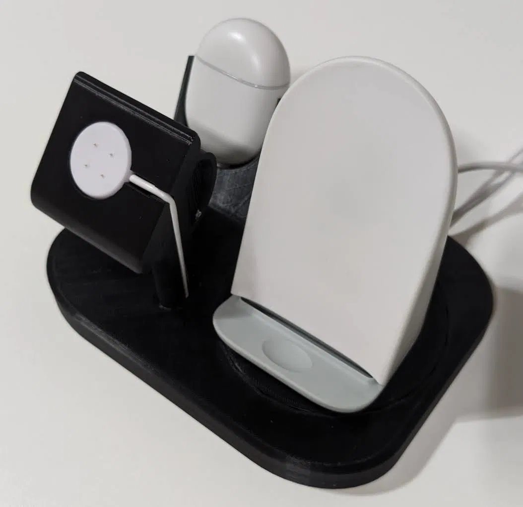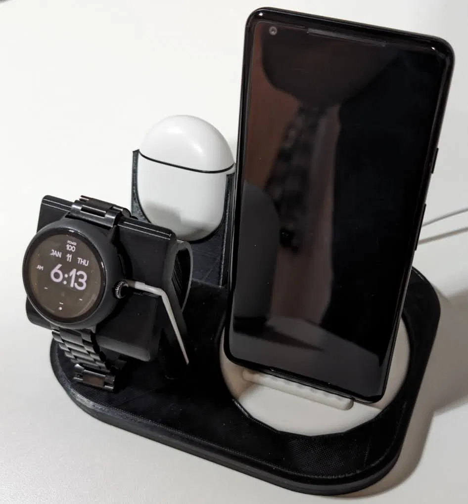 Tao muốn làm một cái đế sạc "hệ sinh thái" cho Google Pixel mà có thể dễ dàng sửa đổi/cập nhật mà không cần phải in lại toàn bộ, đồng thời dễ in mà không cần support. Có thể dùng với Pixel Stand Gen 1 hoặc Gen 2 và bất kỳ điện thoại Pixel nào hỗ trợ sạc không dây, Pixel Watch hoặc Pixel Watch 2, và Pixel Buds (A) cũng như Pixel Buds Pro.