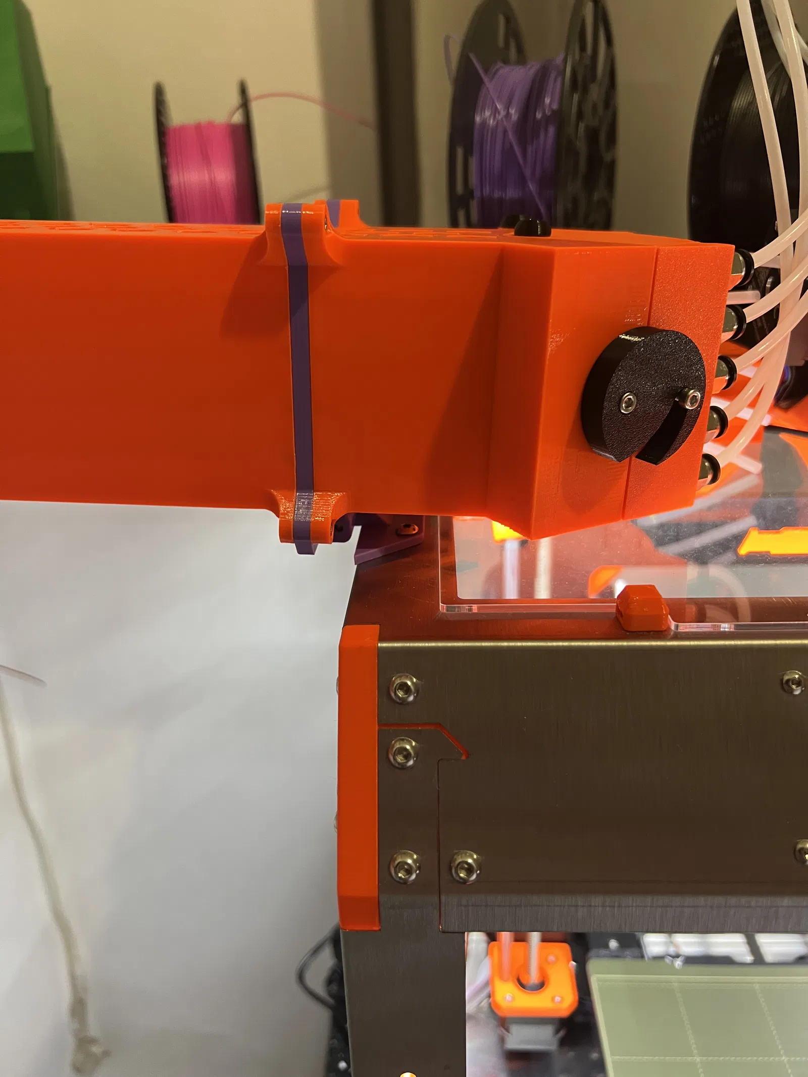 Bộ chuyển đổi này sẽ gắn bộ đệm vào bên cạnh PrusaBox trên hai lỗ đã có sẵn trên nắp trên cho mod giá đỡ cuộn dây bên trong.
