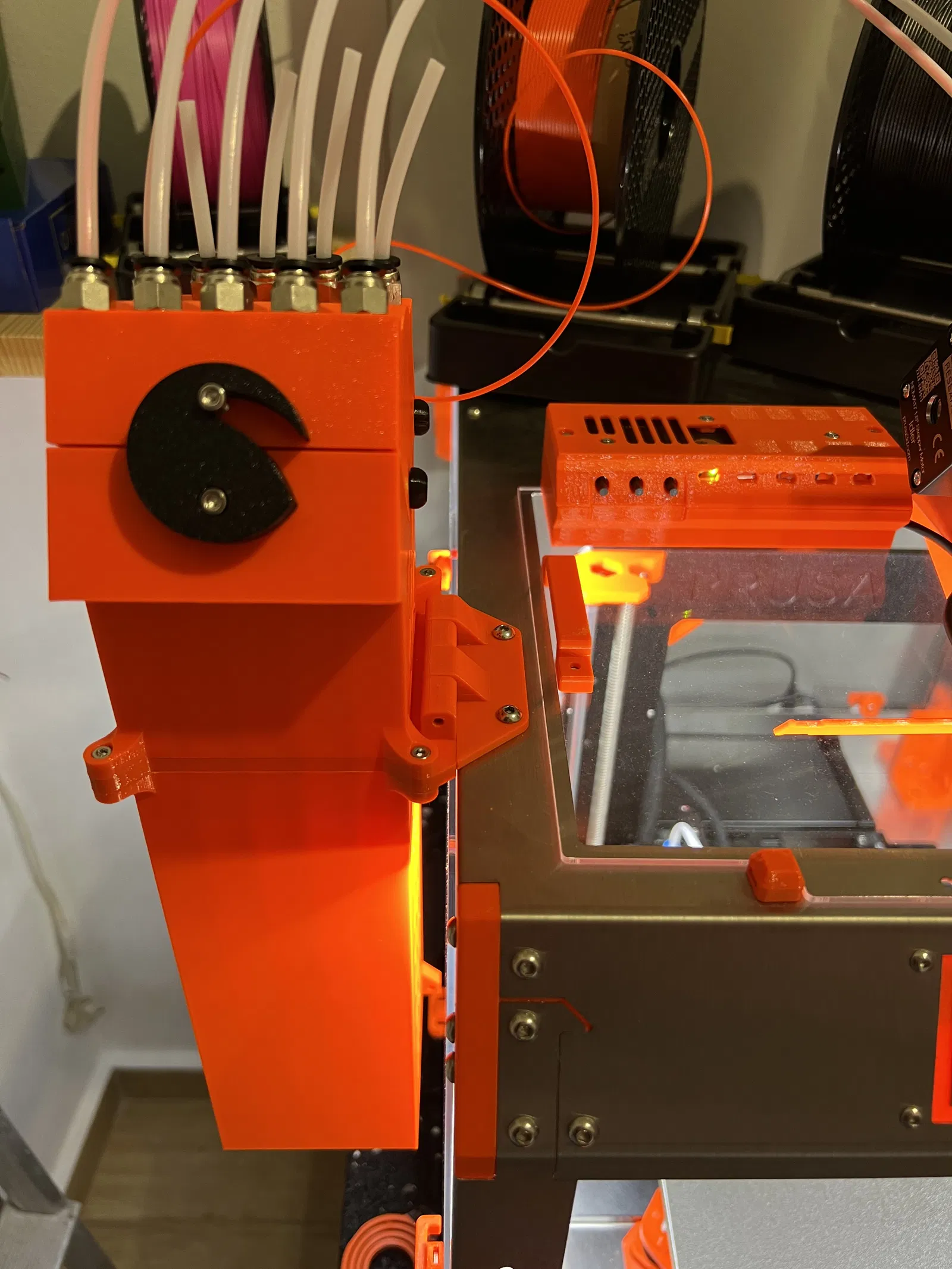 Sau khi lắp MM2S, tôi cần gắn một loại bộ đệm nào đó trên PrusaBox của mình. Bộ đệm tôi quyết định sử dụng là MMU2S Buffer (inspired by RMU Buffer).