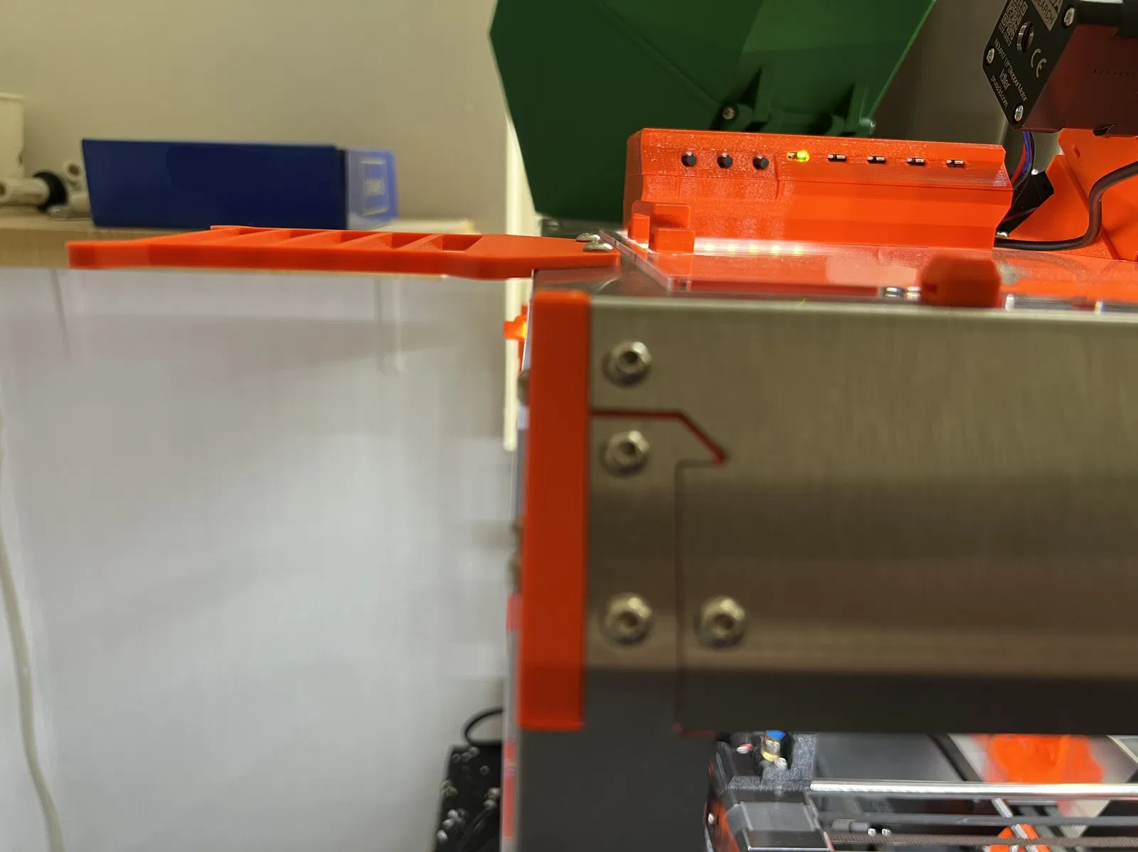 Tui cũng thiết kế một phiên bản có bản lề PrusaBox adapter hinged for "MMU2S Buffer (inspired by RMU Buffer)" để bạn cũng có thể mở cửa bên với nỗ lực tối thiểu. Tui giữ nguyên ngôn ngữ thiết kế bản lề hộp ban đầu để nó trông không lạc lõng trên hộp.