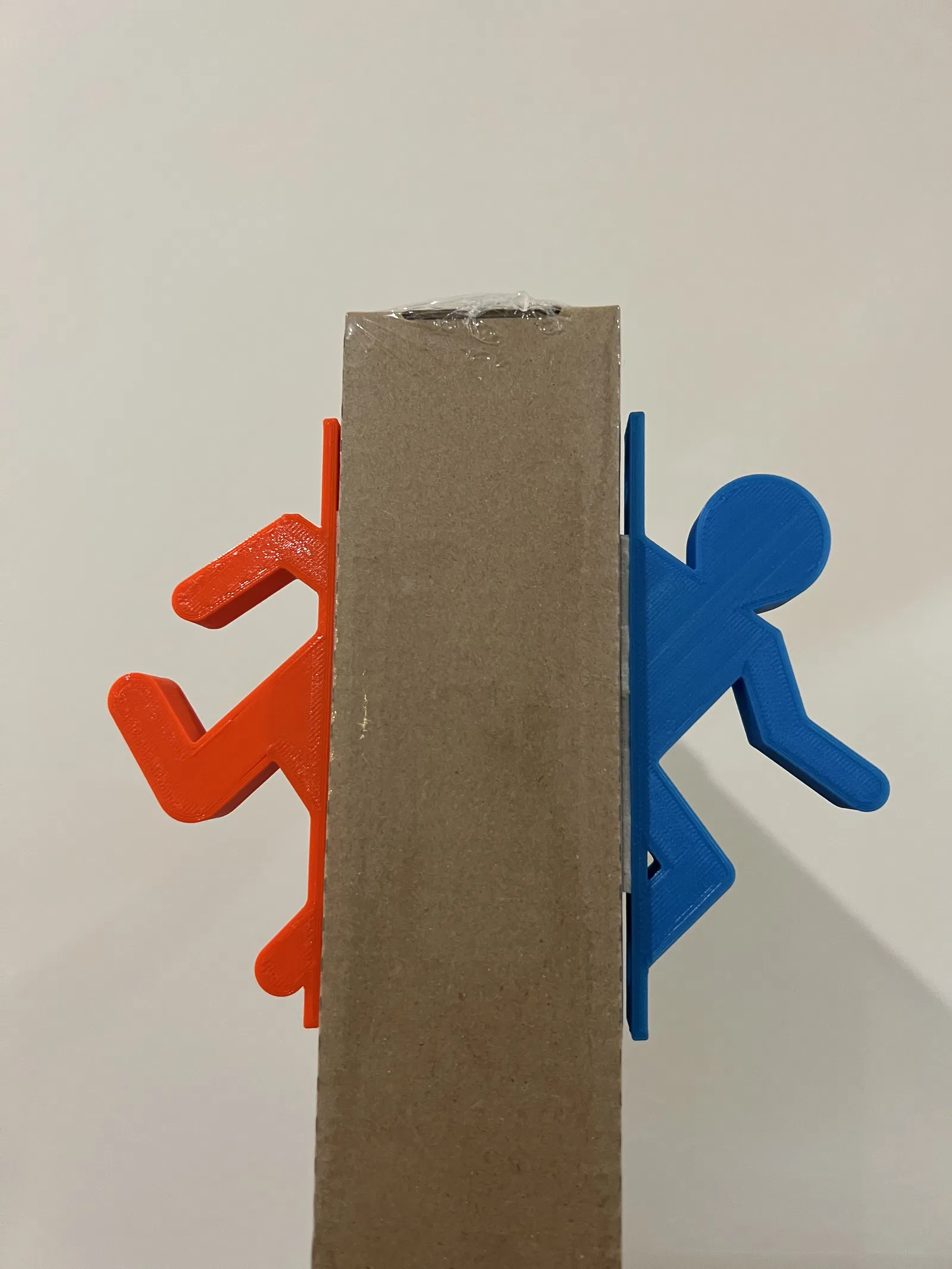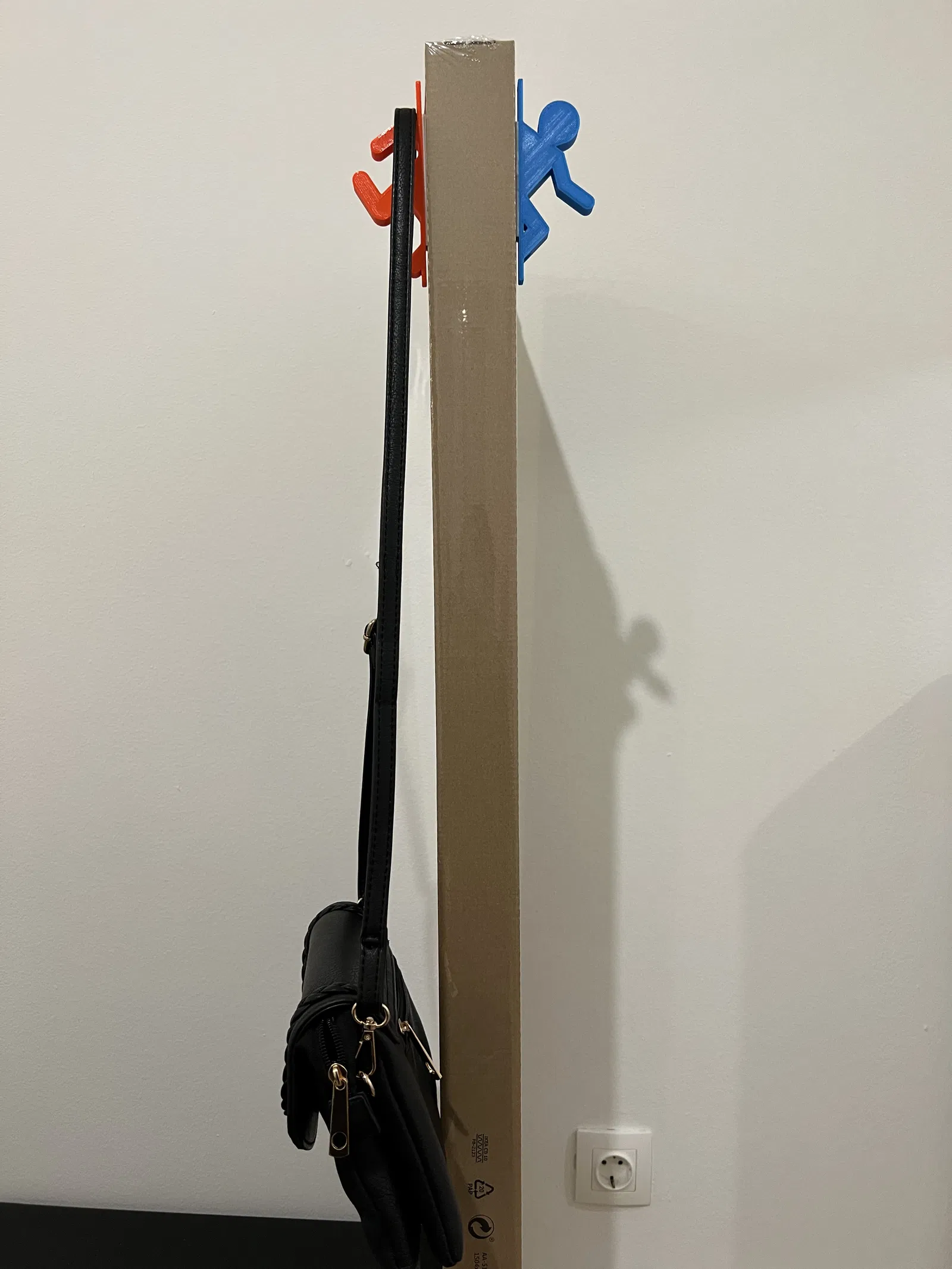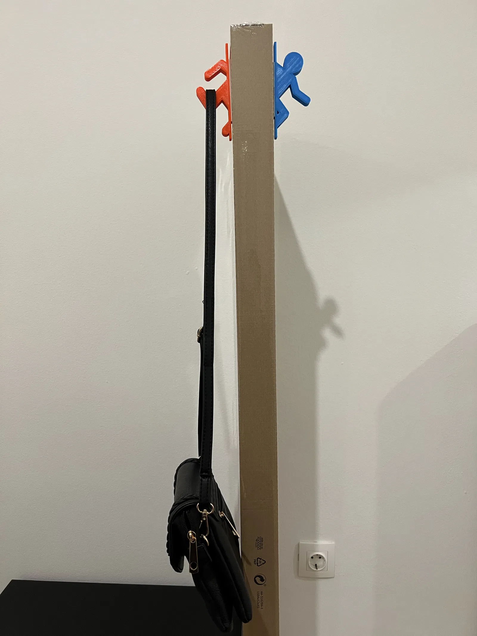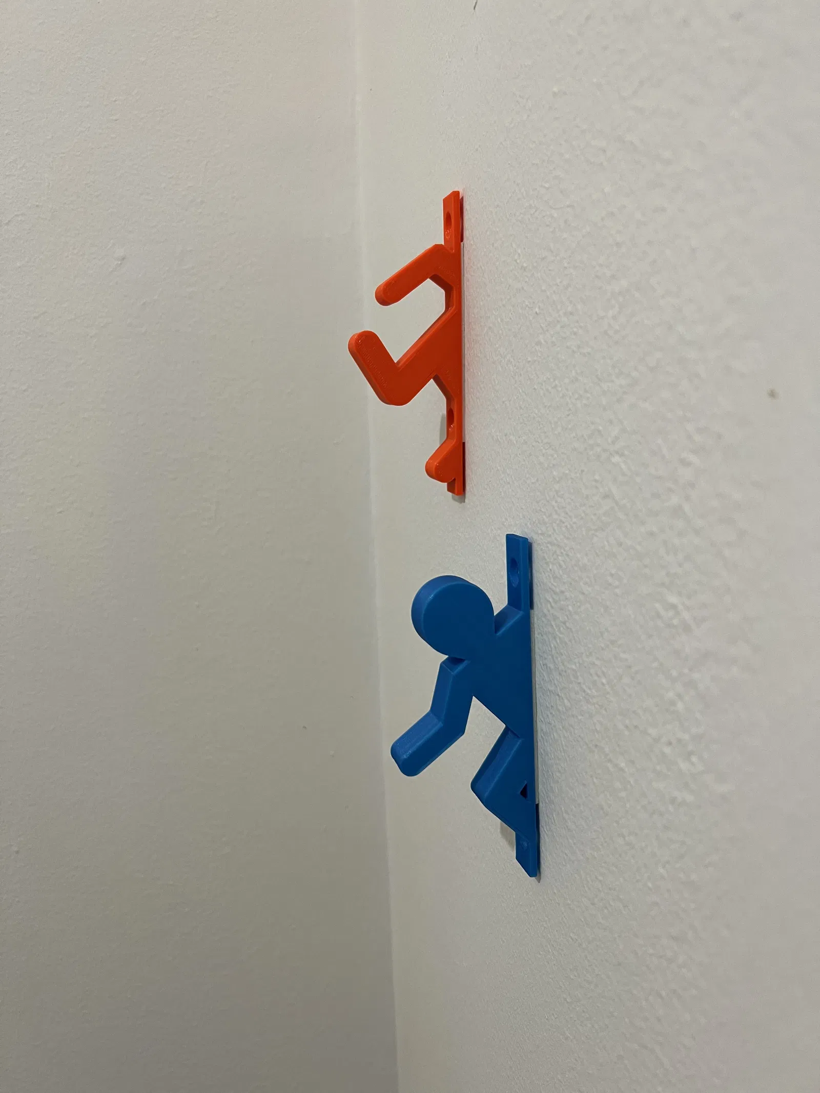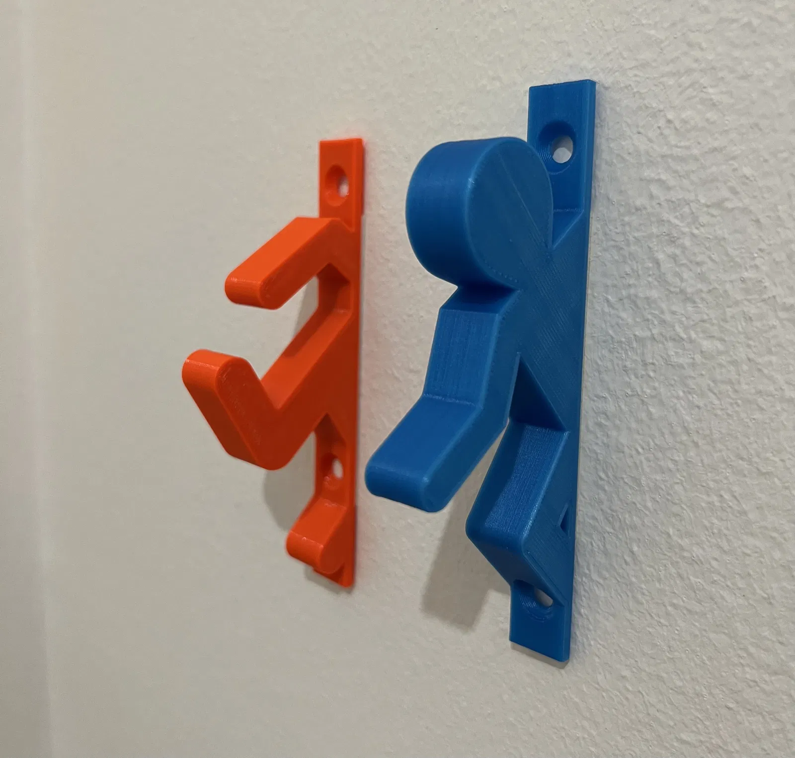 Móc treo tường độc đáo hình nhân vật chạy xuyên cánh cổng, có hai phiên bản: bắt vít hoặc dán keo. Hoàn hảo cho các game thủ, chỉ cần in với PrusaSlicer và vít 6mm là xong!