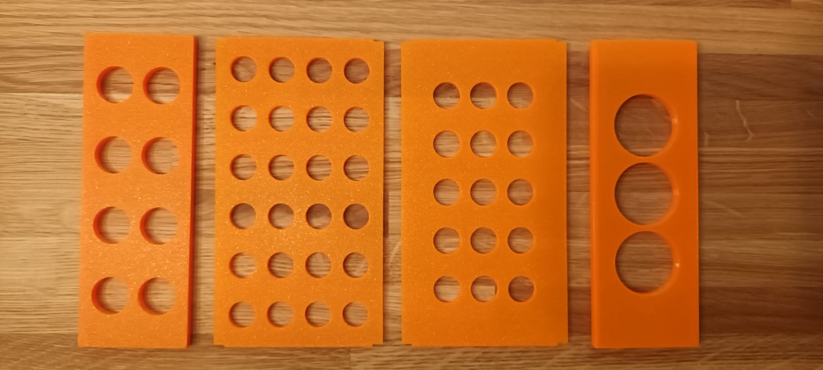 Giá đỡ ống nghiệm đơn giản cho các loại ống 50ml, 15ml, 3ml, 1.8ml, 1.5ml. Mô hình này gồm 4 bộ phận in riêng lẻ và có thể lắp ráp hoặc dán lại với nhau. Kích thước tổng thể là 50 x 80 x 145mm, được in bằng PETG mà không cần support hay brim.