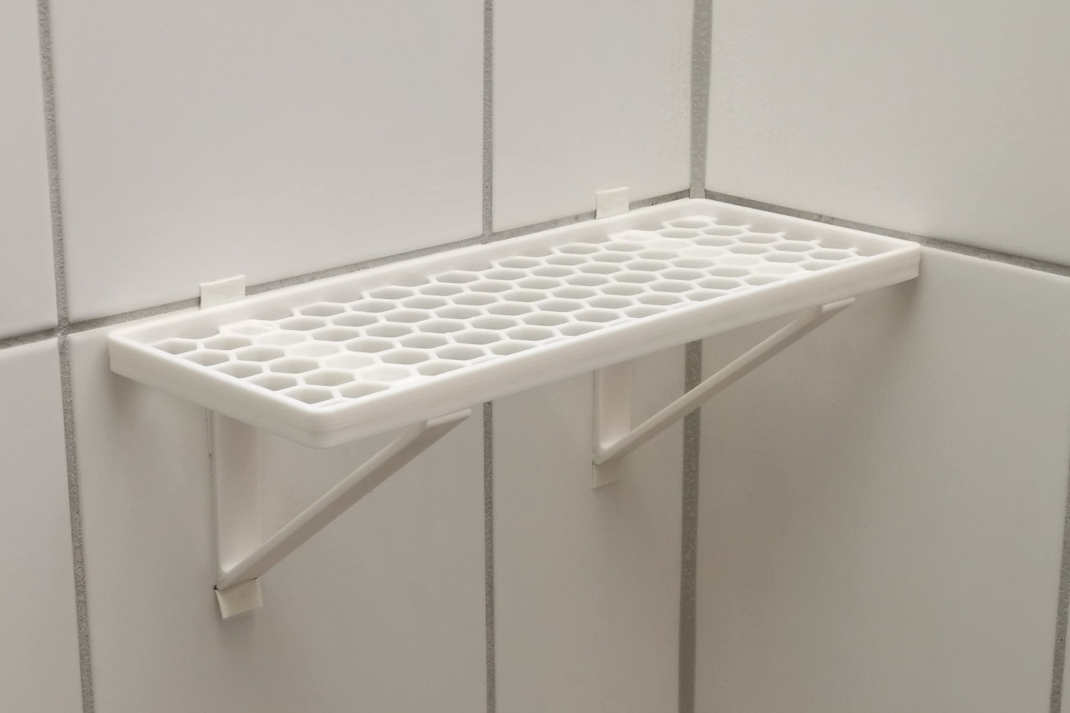 Kệ phòng tắm Hex Tray S1 với họa tiết lục giác. Hoàn hảo cho phòng tắm, giữ mọi thứ bạn cần cho việc tắm rửa. Có hai chiều cao giá đỡ khác nhau.