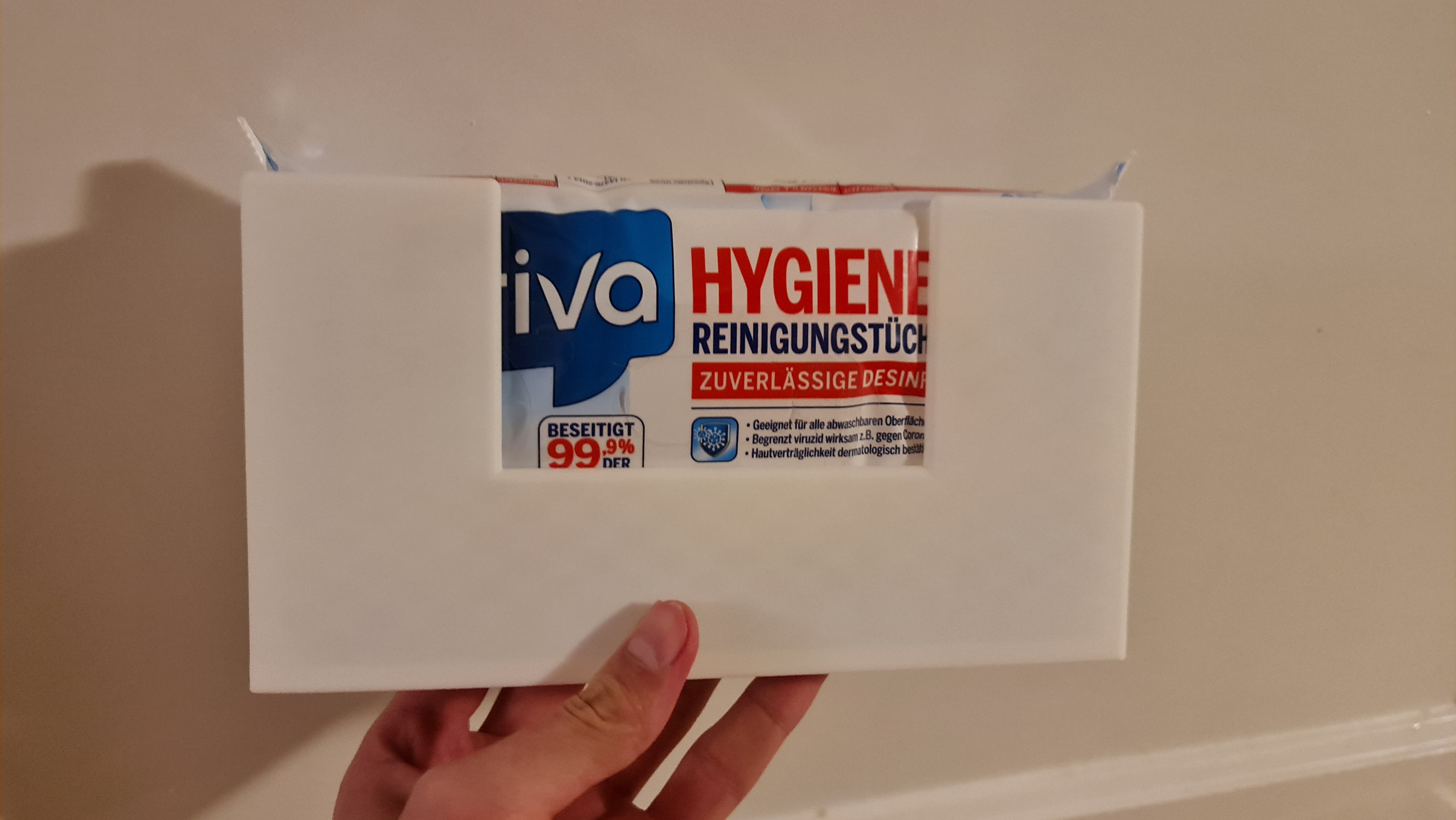 Mình cần một phiên bản mỏng hơn của Hộp đựng khăn ướt do @Battlewind_1062337 làm, nên mình đã chỉnh sửa lại một cái. Phiên bản này mỏng hơn, tiết kiệm vật liệu in và có thể gắn tường dễ dàng bằng Command Strips.