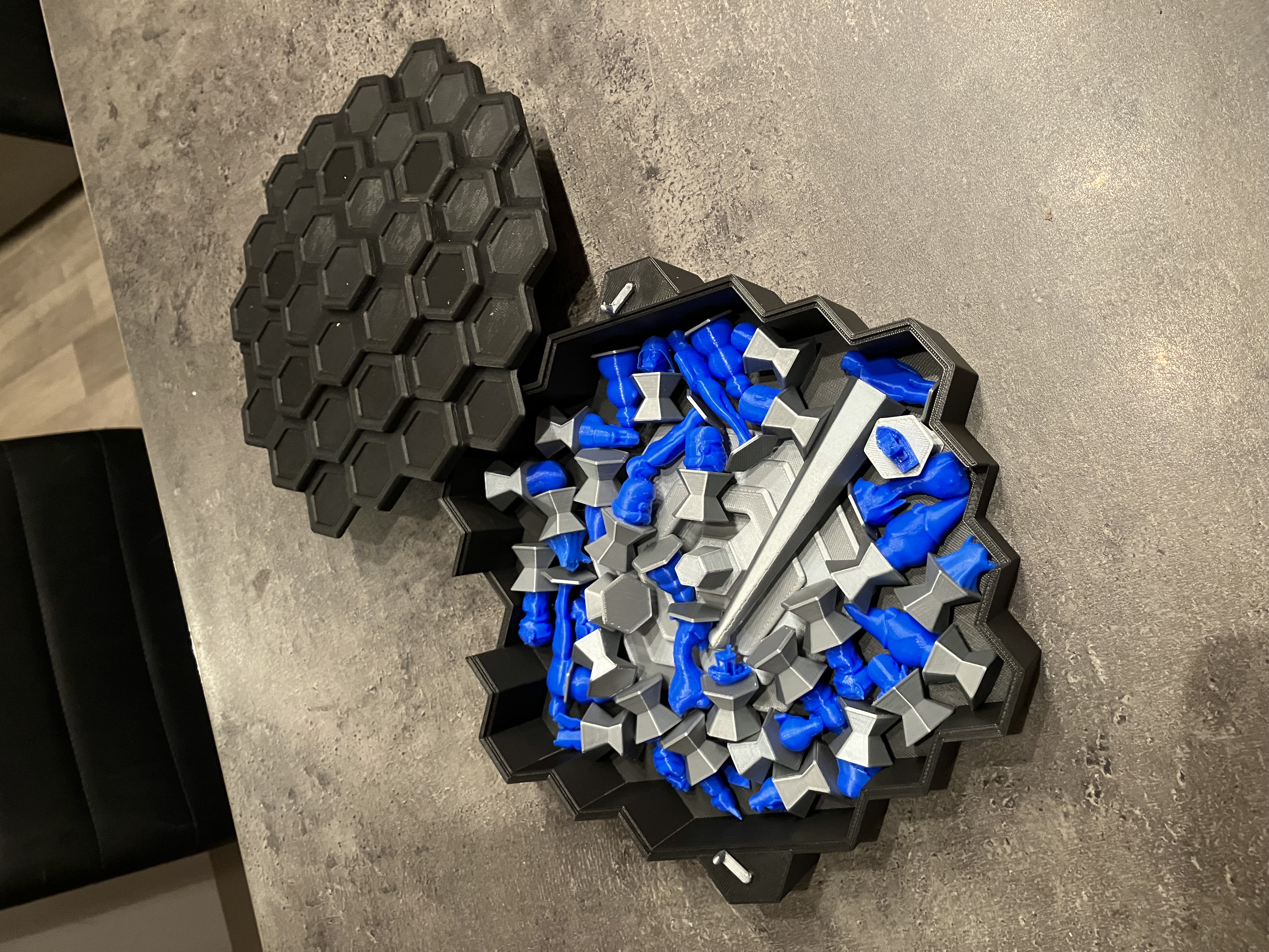 Cái hộp này dành riêng cho phiên bản xếp gọn của trò chơi thăng bằng Prusa và các quân cờ đi kèm. Tui làm cái hộp này vì không có hộp nào phù hợp cho phiên bản game này cả. Hộp được thiết kế khít để bảo vệ tốt nhất, có lỗ hai bên để gắn khóa nhỏ.
