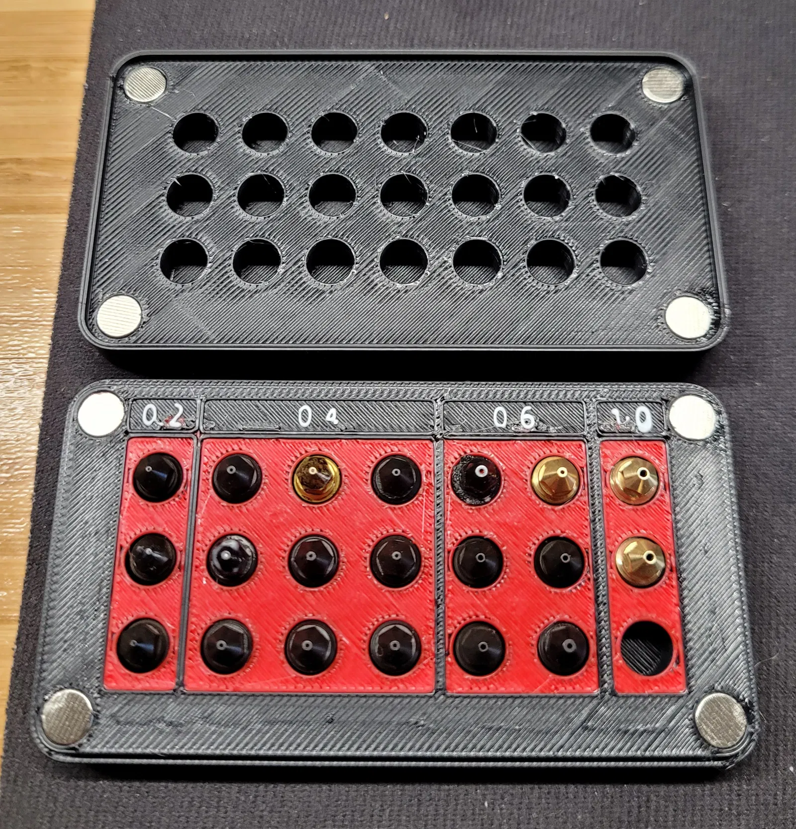 Giúp bạn sắp xếp và cất giữ tất cả các đầu phun phụ kiện cho máy in Bambu của mình một cách gọn gàng. Hỗ trợ tùy chỉnh với file STEP.