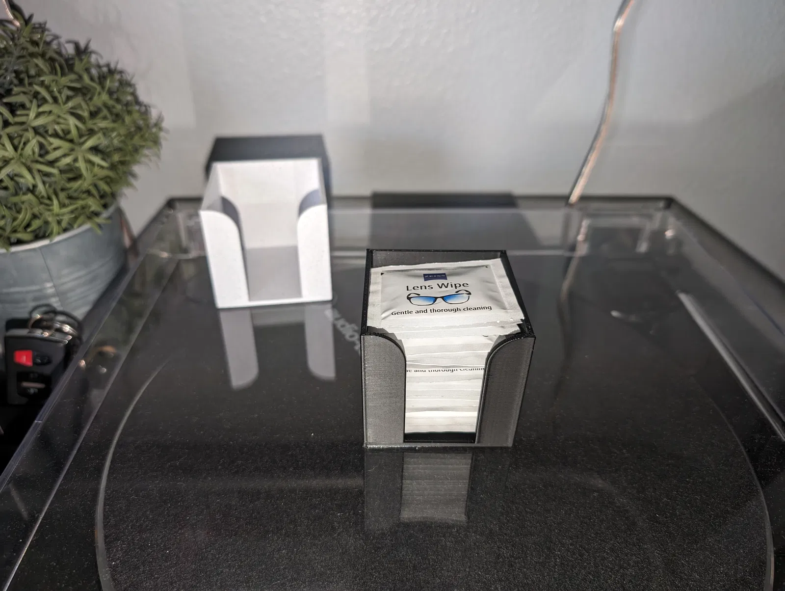 Cái đựng khăn lau ống kính Zeiss đơn giản. Có thể cho khăn vào từ trên xuống hoặc từ phía trước, và đựng được khoảng 20 cái khăn một lần. Nhìn đẹp lắm khi in bằng PLA vân đá cẩm thạch!
