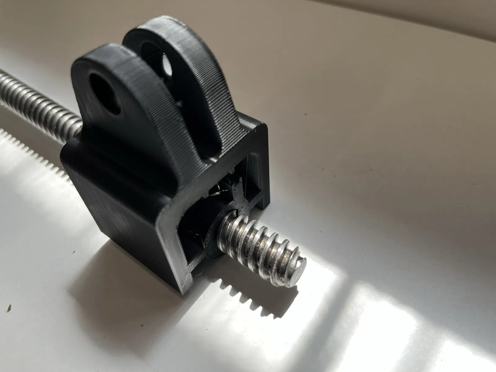 Cái trượt bộ truyền động DL-DT1005 cho ghế sofa JYSK, bao gồm ren trục vít bánh răng 2x14x8/6. Dễ dàng thay thế bằng cách tháo nắp bộ truyền động, ren trục vít và ba con vít. Sau đó lắp cái trượt mới vào theo thứ tự ngược lại. In bằng PLA+ với 4 lớp ngoài và 60% mật độ điền.