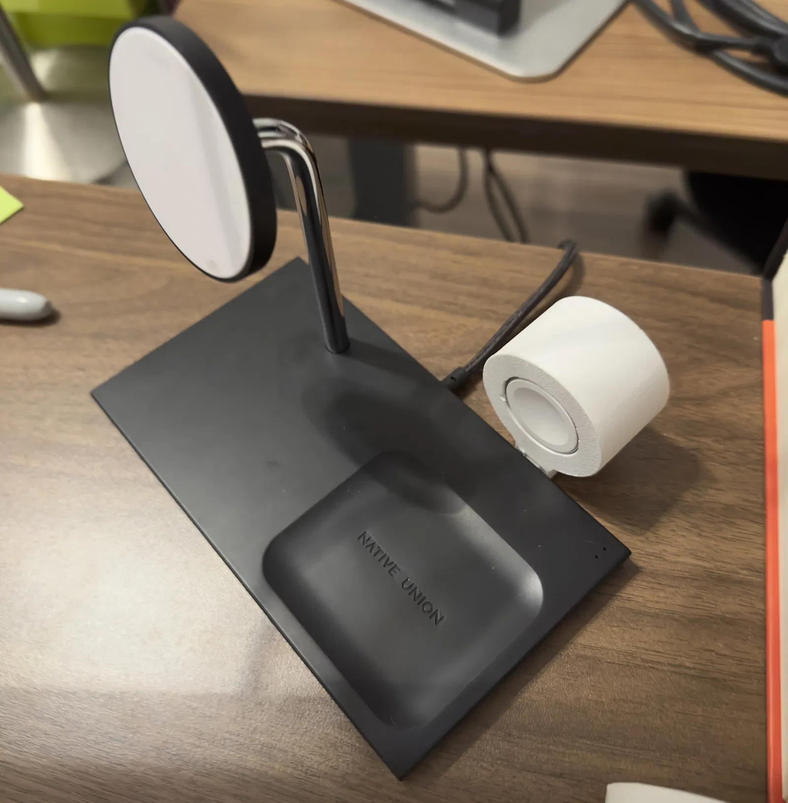 Cái sạc Native Union Snap 3-in-1 (link) có cái sạc Apple Watch MagSafe nhưng mà nó không sạc nhanh được. Tui hay cắm cái dây sạc đi kèm với cái Ultra của tui vô thay vì xài cái dây đi kèm với cái đế sạc. Cho nên tui mới chế cái đế này để xài cái sạc của Apple Watch, nó vừa khít với cái đế luôn. Nó còn cuộn dây sạc lại bên trong nữa cho khỏi bị rối dây trên bàn.