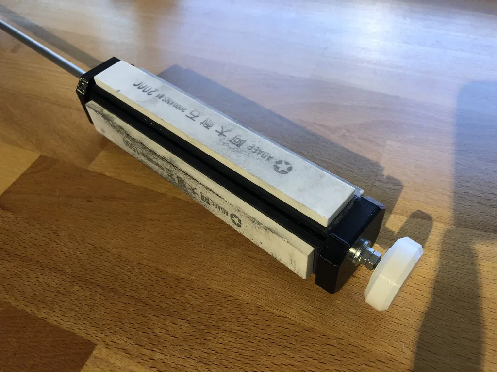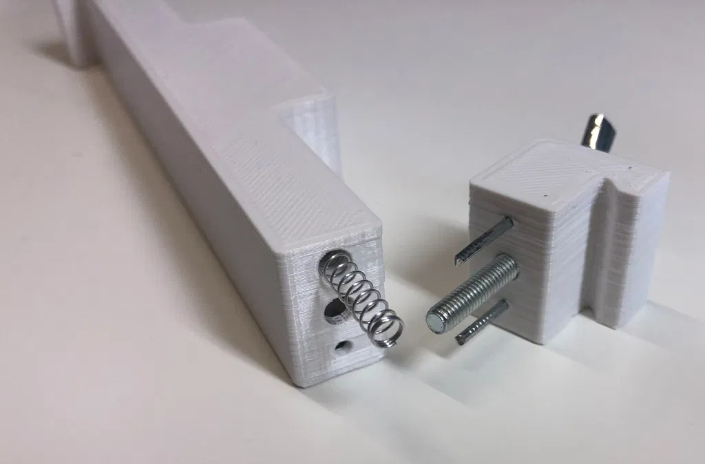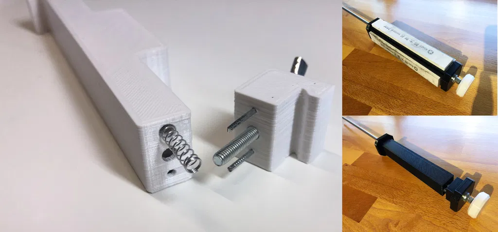 Cái tay cầm này có lò xo ngang, thay cho kiểu bóp và vặn ốc cũ. Nó cũng linh hoạt hơn với các loại đá mài có kích thước khác nhau. Chỉ cần 2 cây đinh nhỏ và lò xo bút bi là xong. Tối ưu hóa cho việc in ấn và sử dụng dễ dàng hơn.