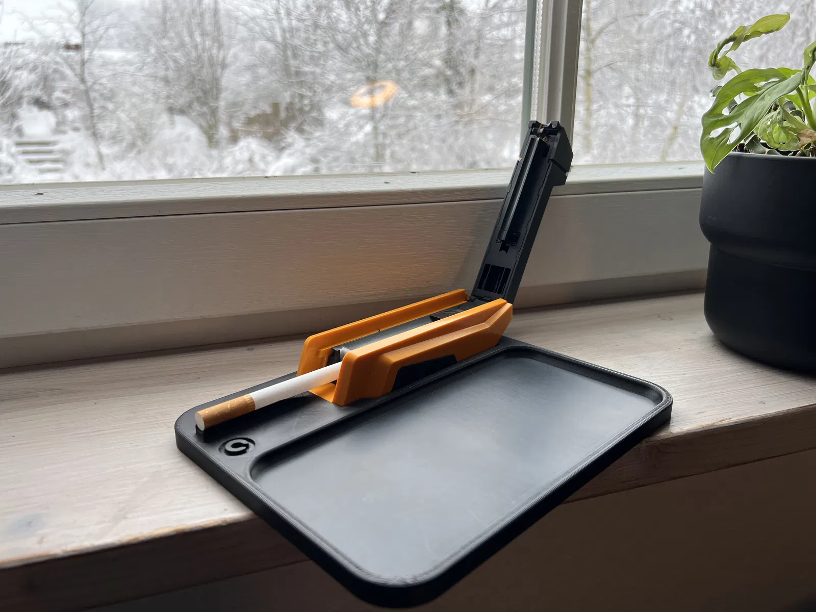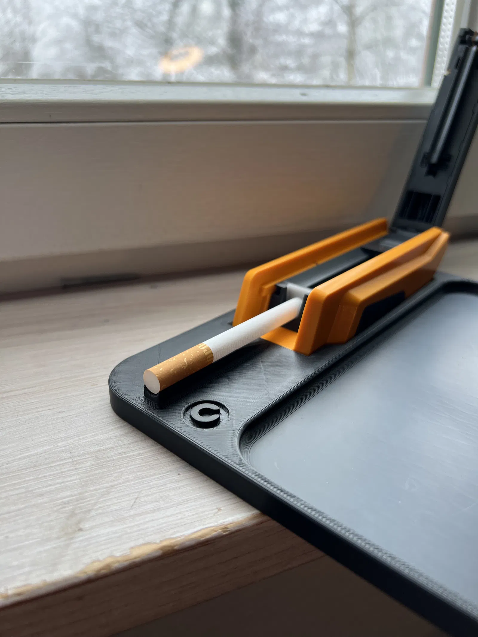Cái khay này dùng để cuốn thuốc lá với máy GIZEH Vario Stopfer nè, có thêm cái hướng dẫn xỏ ống lọc thuốc lá vô cho tiện nha. In từ nhựa ASA trên máy Bambulab P1S, bề mặt trong được làm phẳng.