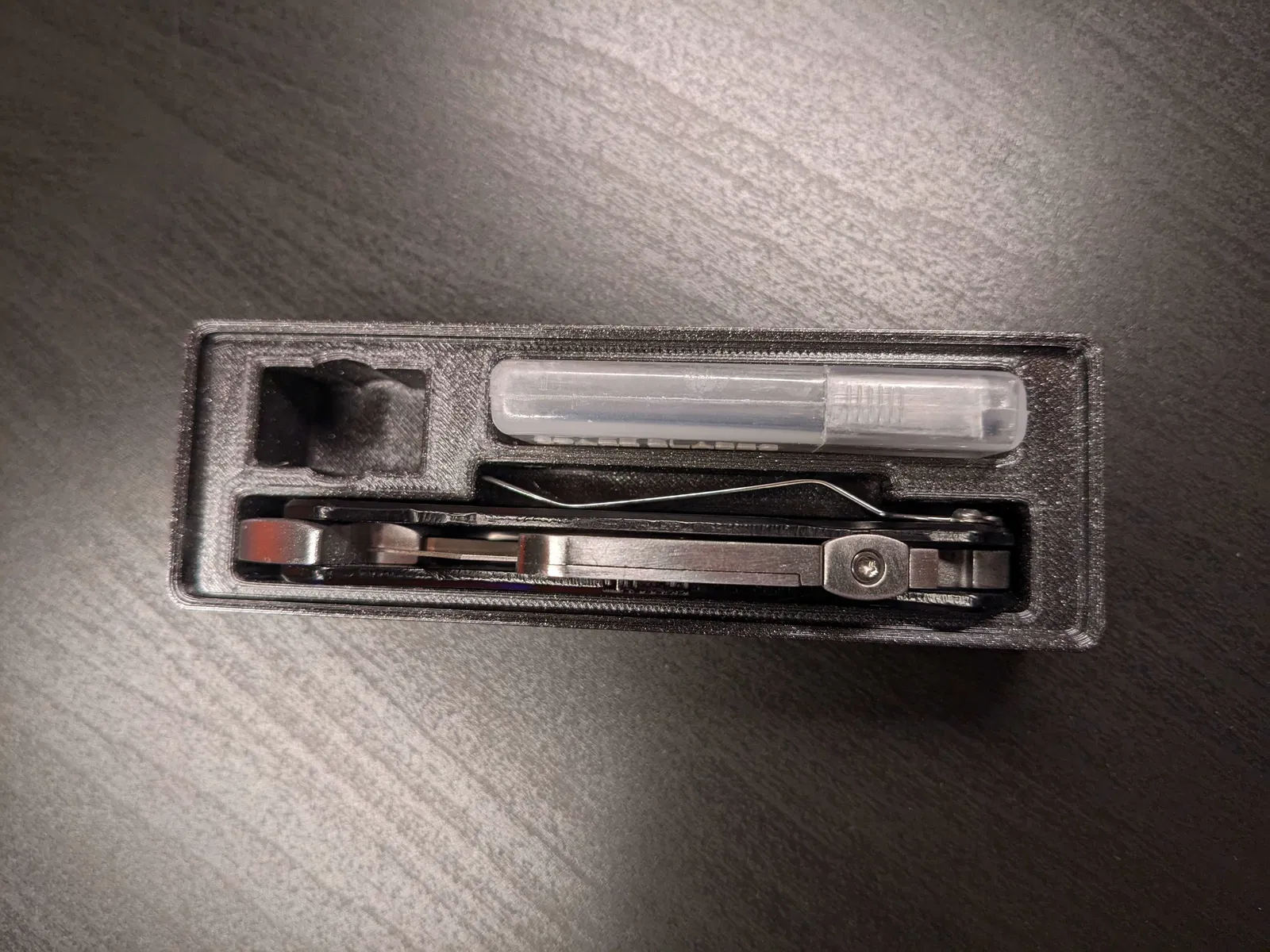 LƯU Ý: Vảy trong/polycarbonate của phiên bản “Clear” của dao dường như dày hơn các màu khác, và có thể không vừa với giá đỡ dao này. Các tệp STEP được bao gồm nếu muốn sửa đổi. Cảm ơn @Nathankenned_1607894 đã cho biết thông tin này.