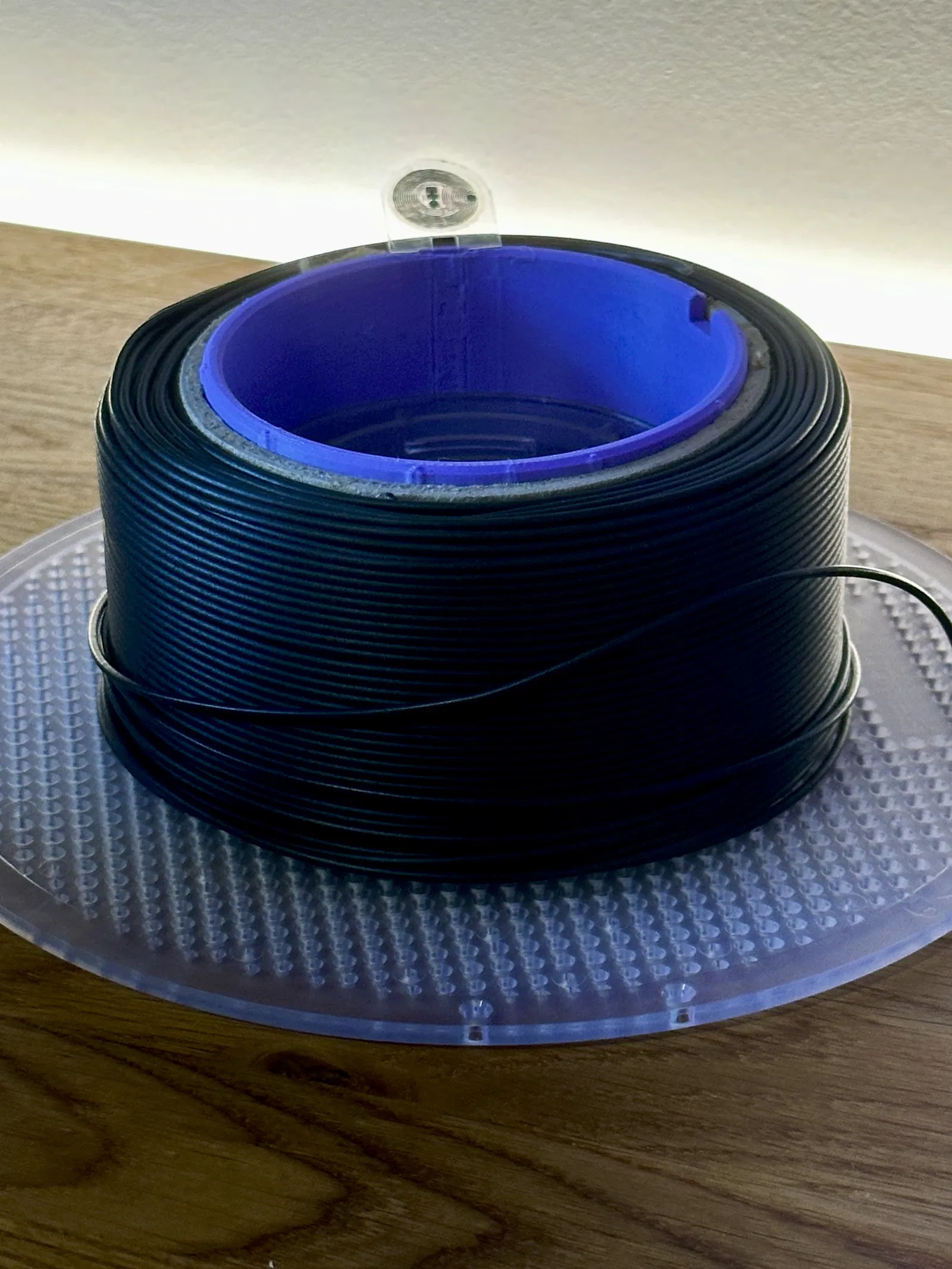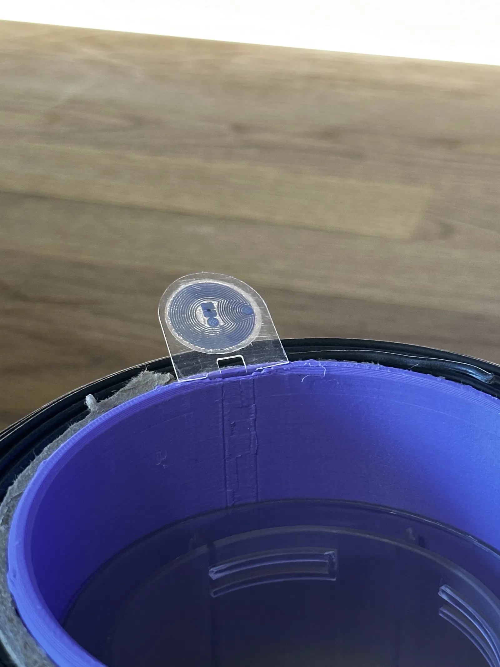 Chèn chip RFID đã tháo ra trước đó vào khe mỏng - nó có thể hơi chặt nếu còn một ít keo từ chip gốc. Gập chip lại để nó nằm phẳng với cuộn filament mới