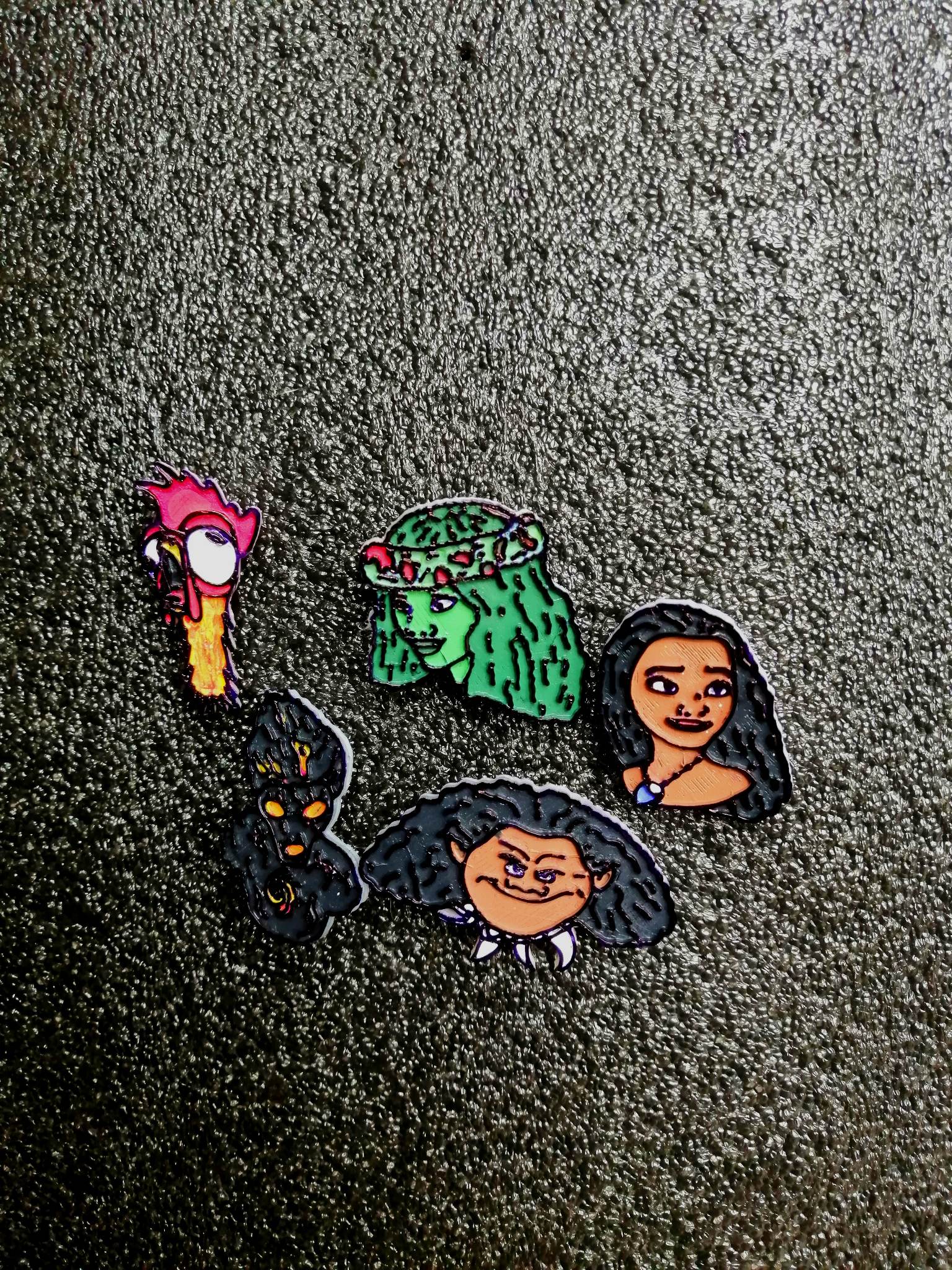 Bộ sưu tập 5 huy hiệu độc đáo lấy cảm hứng từ nàng công chúa Moana của Disney. Bạn có thể in ra và trang trí lên túi, balo, quần áo. Phần ghim cài được gắn chắc chắn bằng mỏ hàn hoặc keo nến.