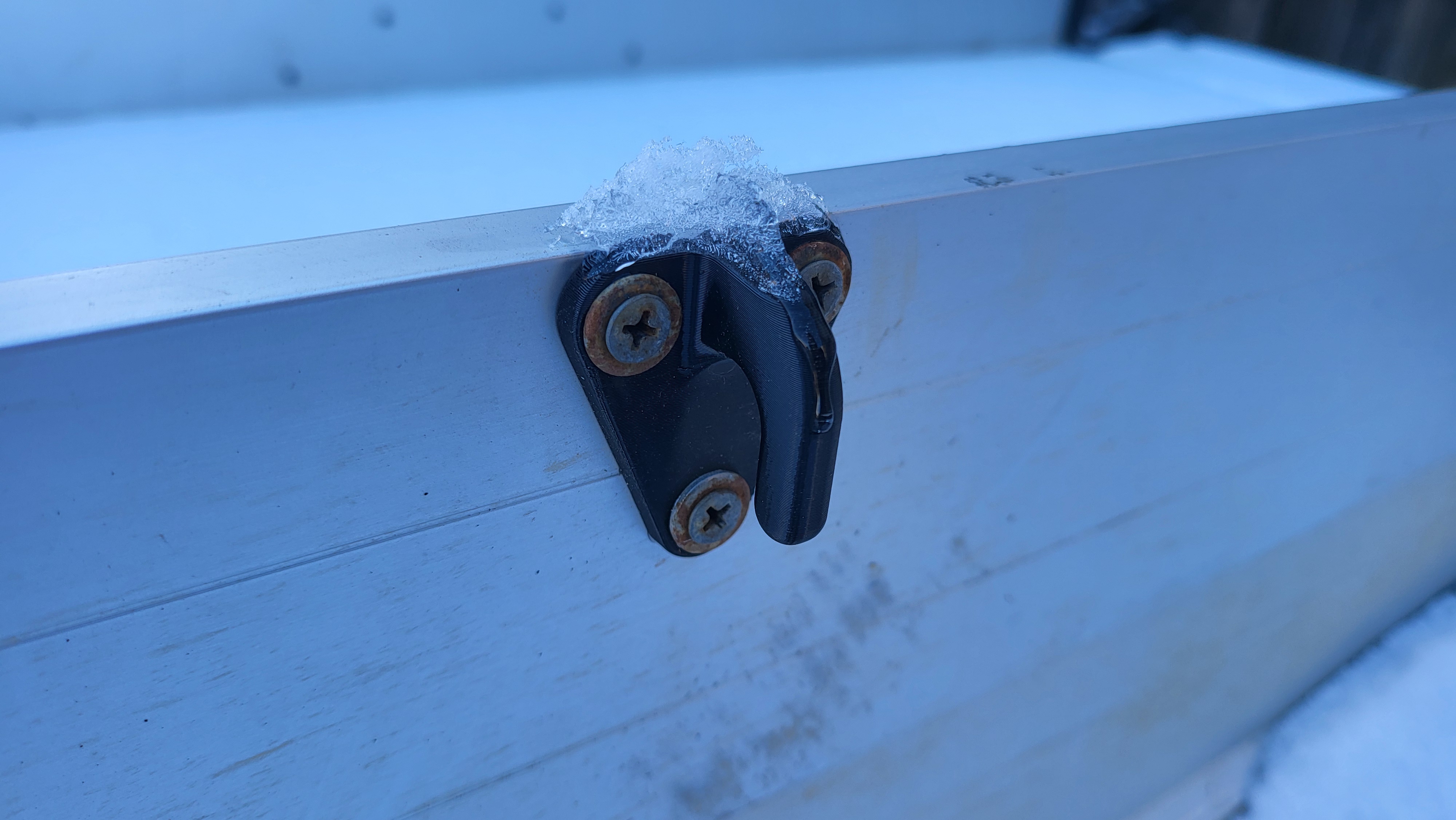 Móc trailer dùng để cố định lưới, bạt, dây thun, v.v. Hàng này được in bằng nhựa PETG màu Jet Black của Prusament, đảm bảo độ bền và chịu lực tốt cho nhu cầu của bạn.