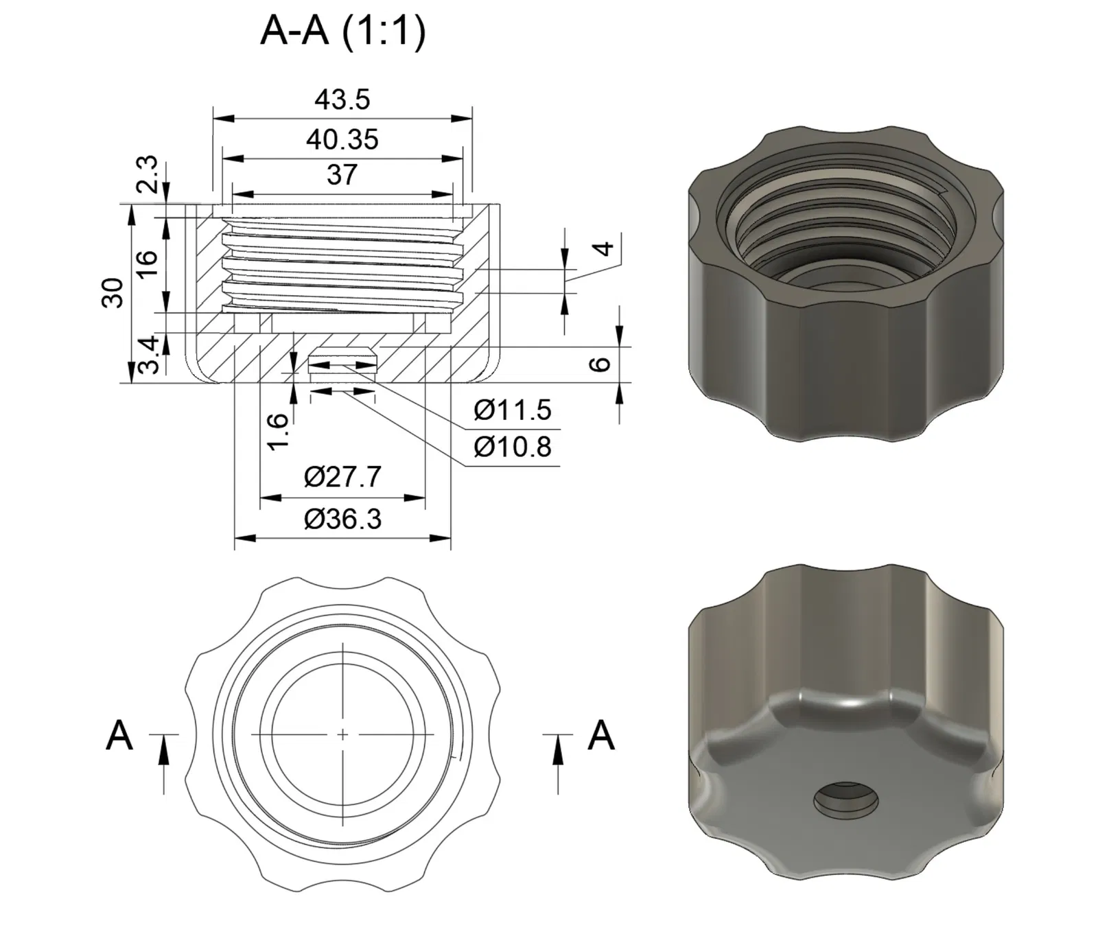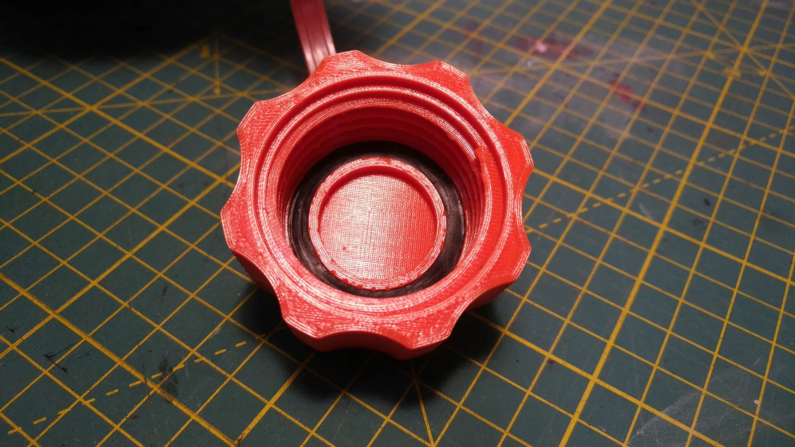Nắp bình xăng mới với ren Buttres M40x4 và rãnh cho ron cao su. Cập nhật vật liệu sang PA12 do PETG có thể bị giòn và phân rã khi tiếp xúc với xăng. File g-code cho MK4 cập nhật.