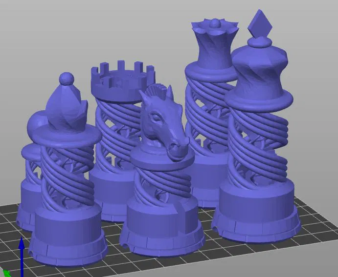 Chỉnh sửa mẫu thử in resin cho bộ cờ vua xoắn ốc. In theo mẫu, loại bỏ Vua và Hậu rồi in lại với màu resin khác. Đã làm mịn đáy để bớt góc cạnh.