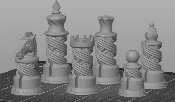 In ra như sắp xếp trên khay, bỏ con Vua với Hoàng Hậu ra rồi in lại, lặp lại cho màu resin khác.