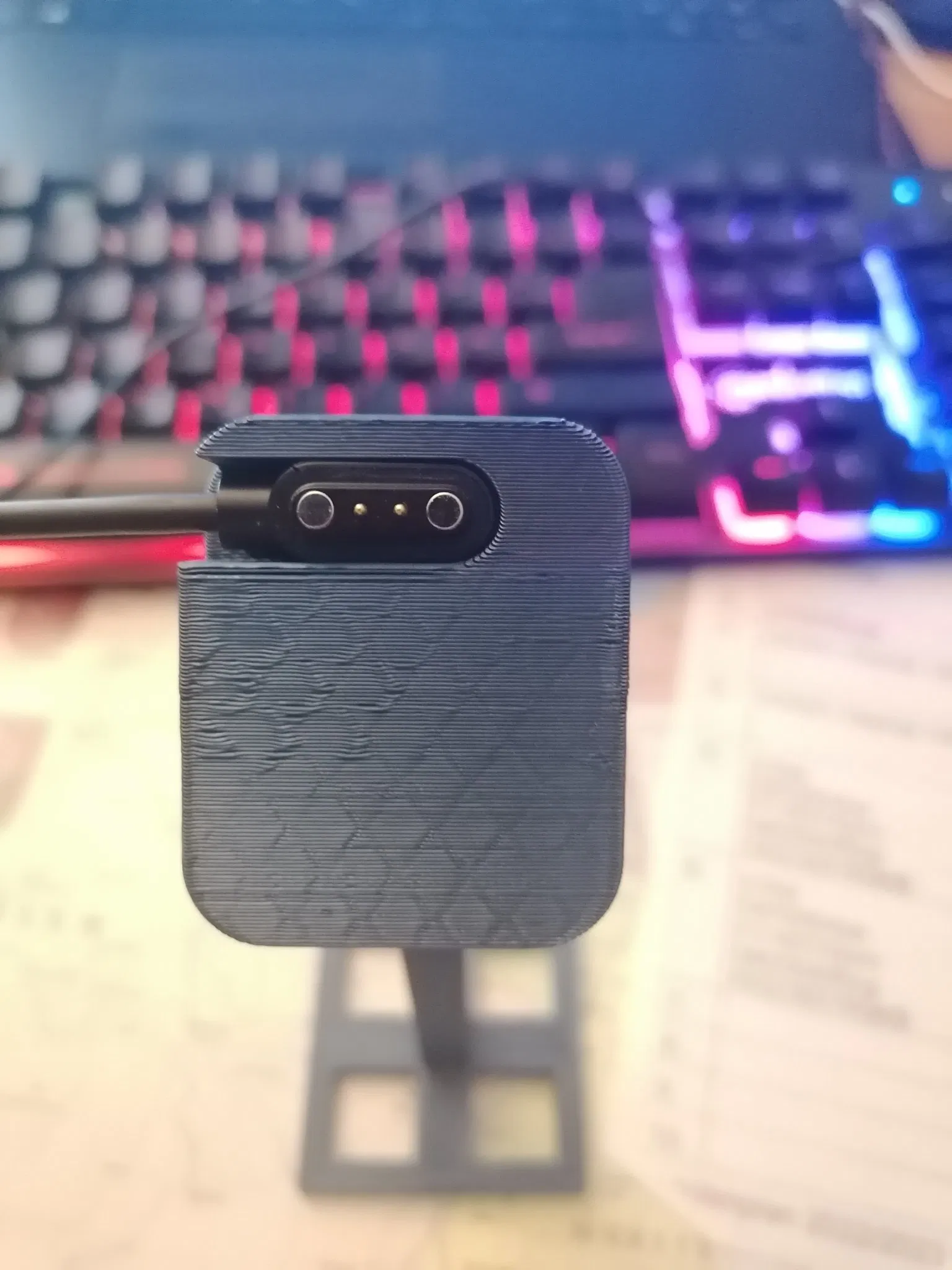 Tôi đã tạo giá đỡ này cho đồng hồ thông minh của mình trong FreeCAD. Kích thước của cáp sạc của tôi có kích thước giống như hầu hết các cáp sạc đồng hồ thông minh khác. Tôi đã tạo nó để không cần hỗ trợ.