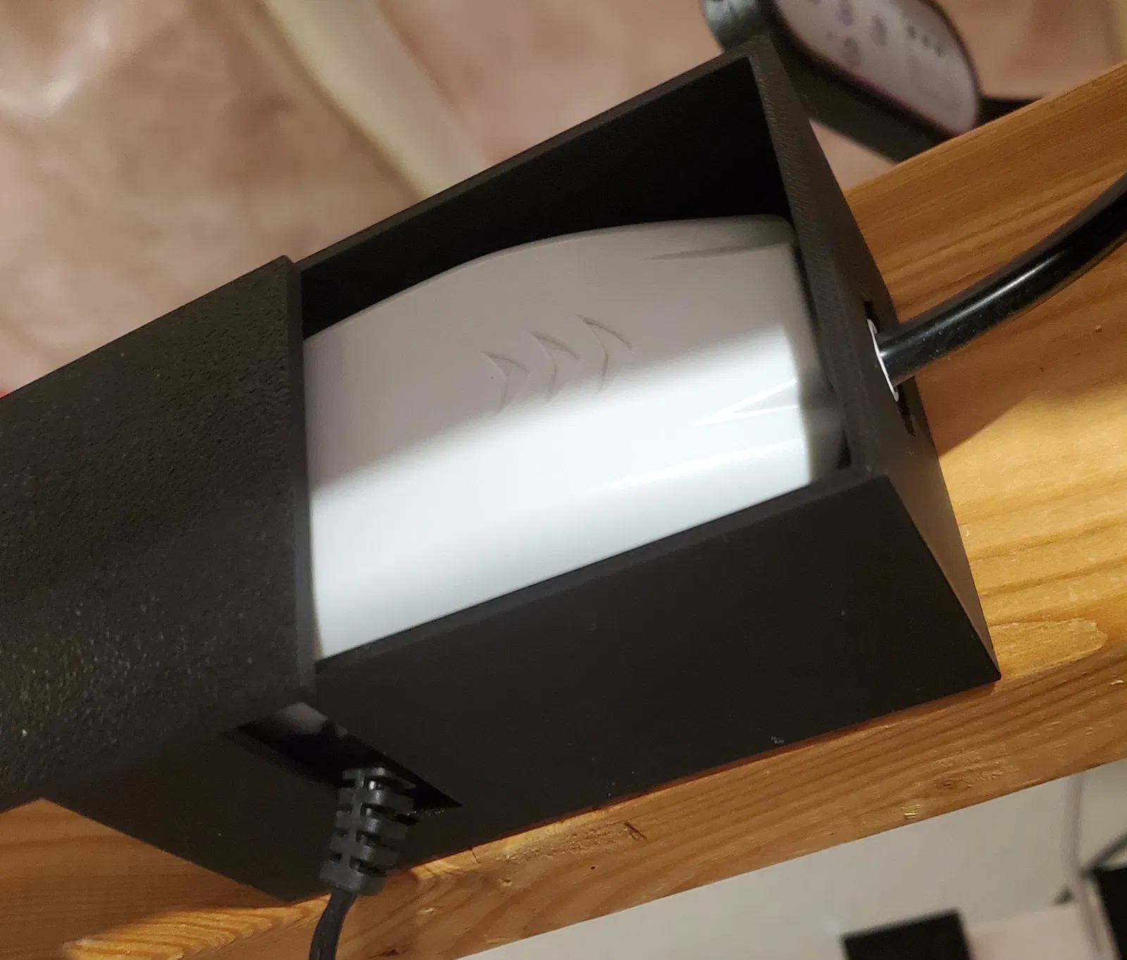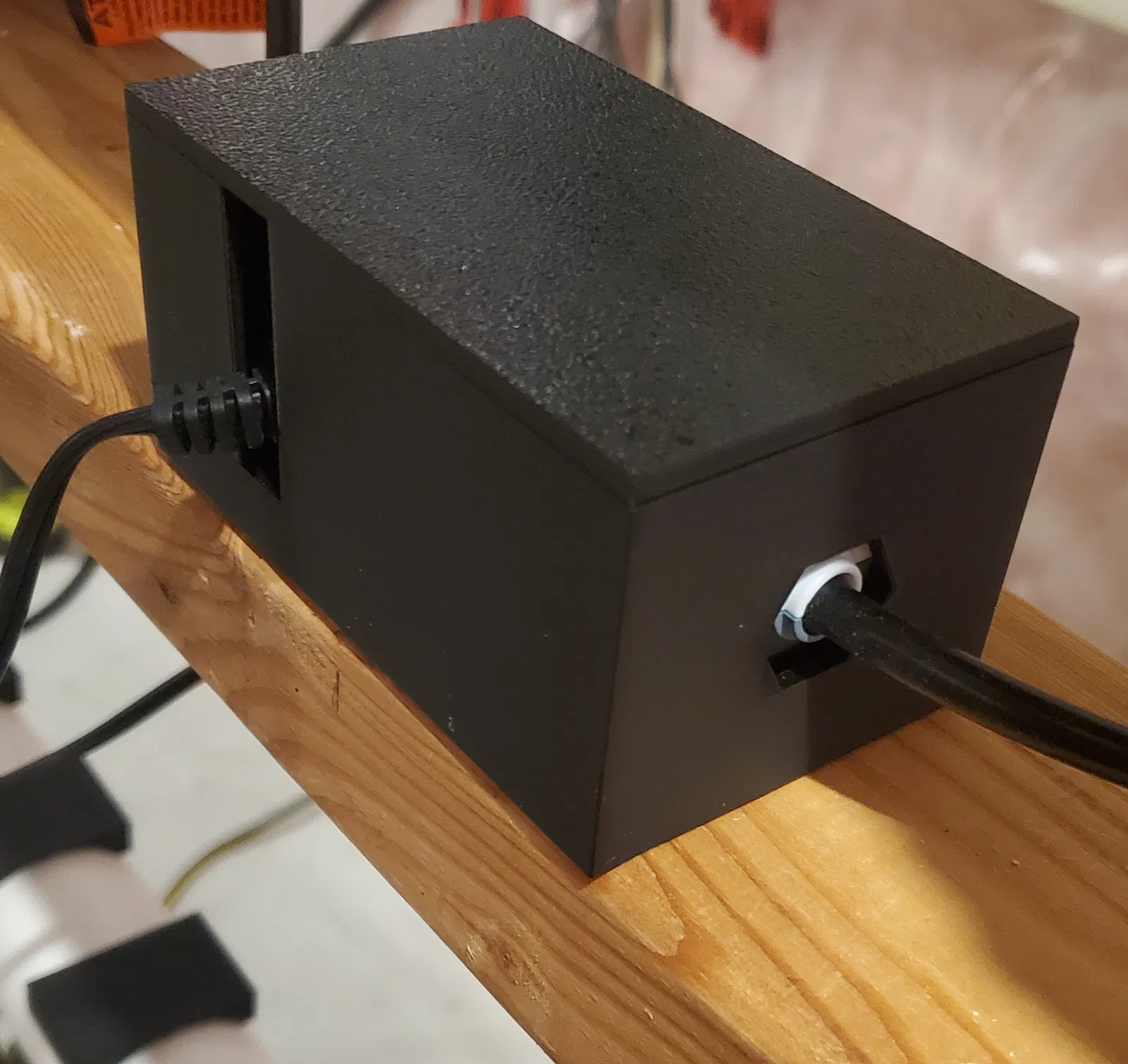 Cái hộp nhỏ gọn này được thiết kế rất đẹp để giấu máy bơm không khí bể cá tiêu chuẩn của bạn. Nó có bốn lỗ để chân chống rung, hai lỗ để gắn ốc vít, giúp máy chạy êm, ổn định và dễ lắp đặt. Giải pháp này vừa đẹp vừa thiết thực, kết hợp hài hòa cả hình thức lẫn công năng sử dụng.