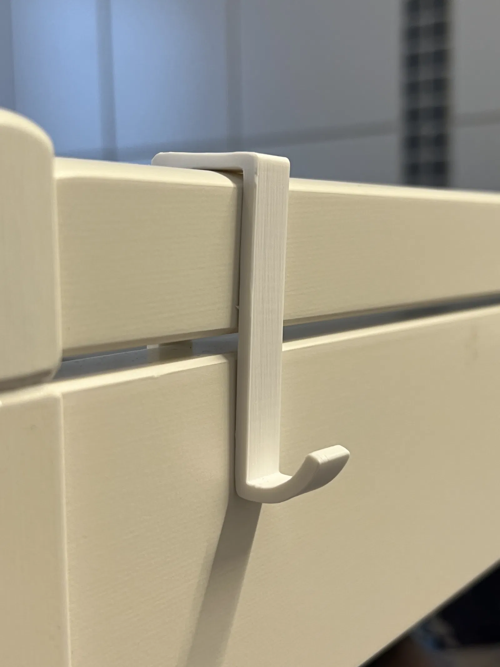 Cái móc này gắn vừa khít ở hai bên của bàn thay đồ IKEA Gulliver. Tụi mình dùng để treo khăn tắm và túi rác, mà thích lắm luôn. Mình dùng nhựa PETG để cái móc có độ đàn hồi tốt hơn chút. Mình cũng chỉnh độ rộng đường đùn là 0,8mm. Tôi có dùng brim, nhưng có thể bạn không cần đâu.