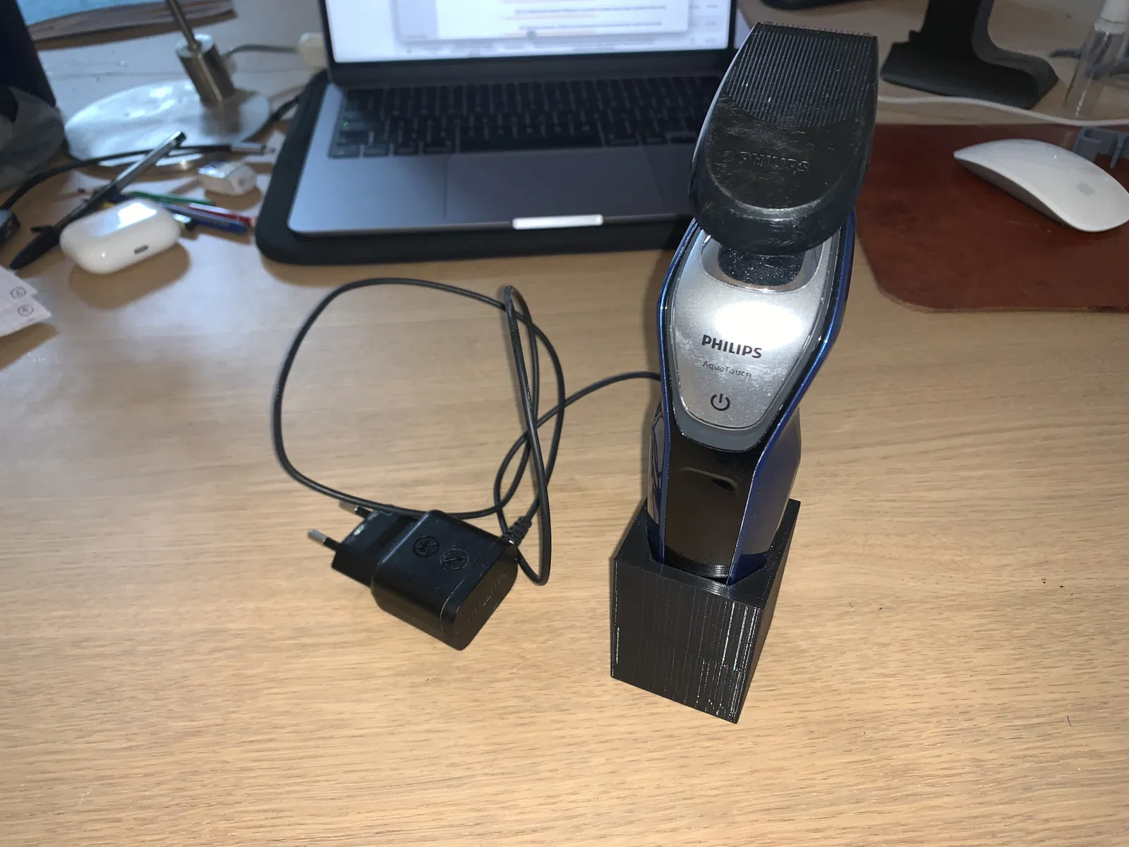 Đế sạc cho dao cạo râu Philips serie 5000, thiết kế tối giản để đặt dao cạo trên bồn rửa mặt hoặc kệ phòng tắm.