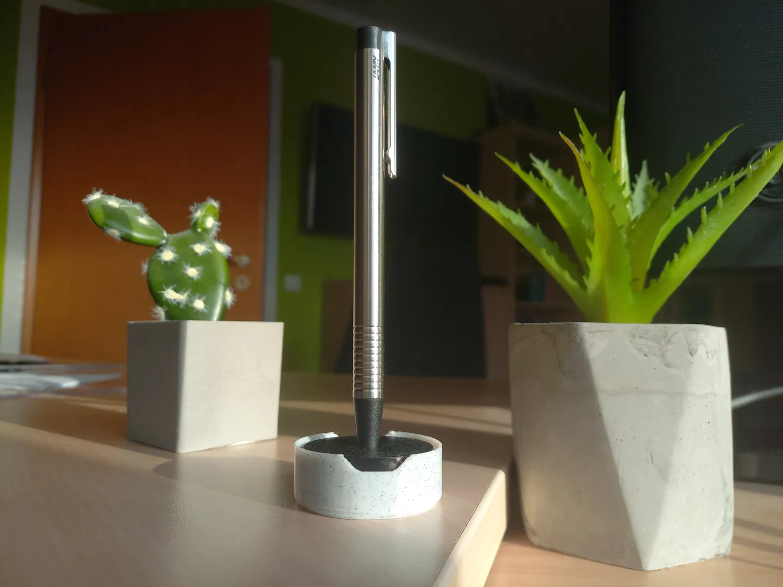 Đây là một đế cắm bút hiện đại, thời trang. Nhờ thiết kế đơn giản, mang hơi hướng tương lai, bàn làm việc của bạn sẽ trông gọn gàng và sạch sẽ.
