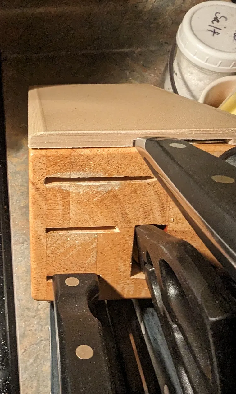 Mới tậu dao xịn mà hết chỗ để? Đừng lo, với phụ kiện gắn thớt gỗ này, bạn có thể cất giữ an toàn cả dao Santoku 7 inch lẫn dao Chef 8 inch. Dễ dàng lắp đặt bằng băng keo hai mặt, in bằng gỗ PLA thơm phức. Chỉ cần support một cạnh, in lớp dày, infill thấp là xong!