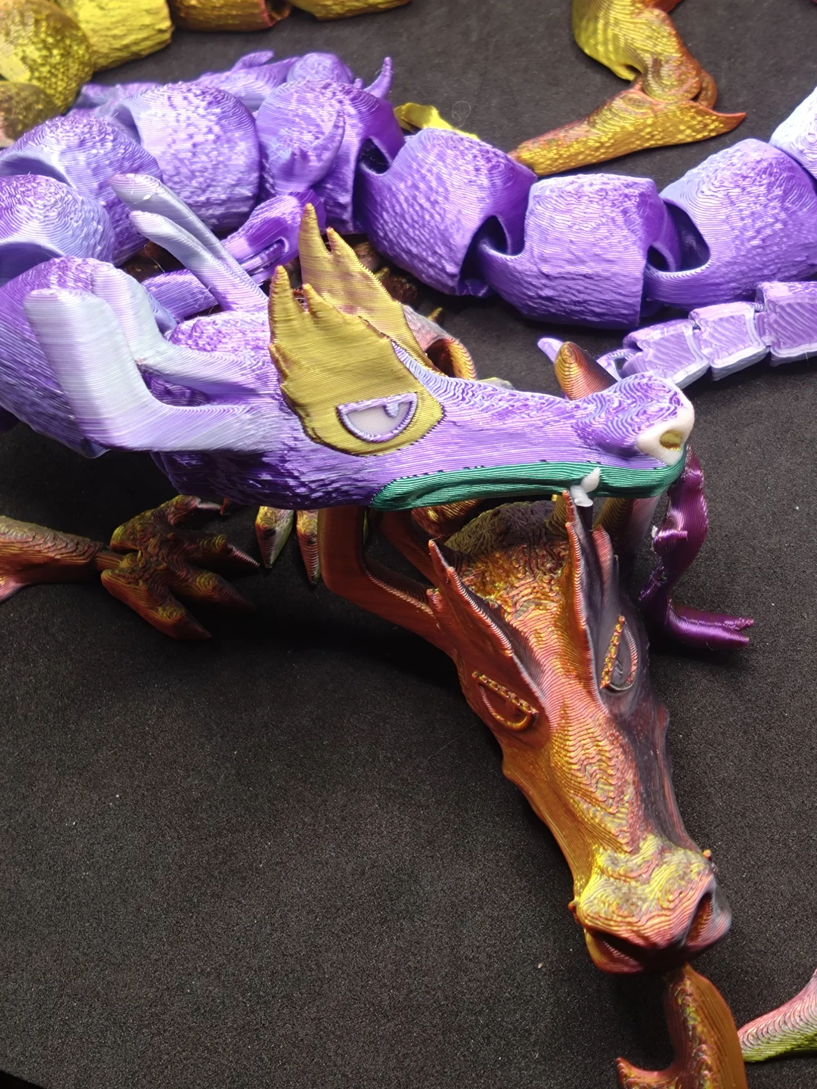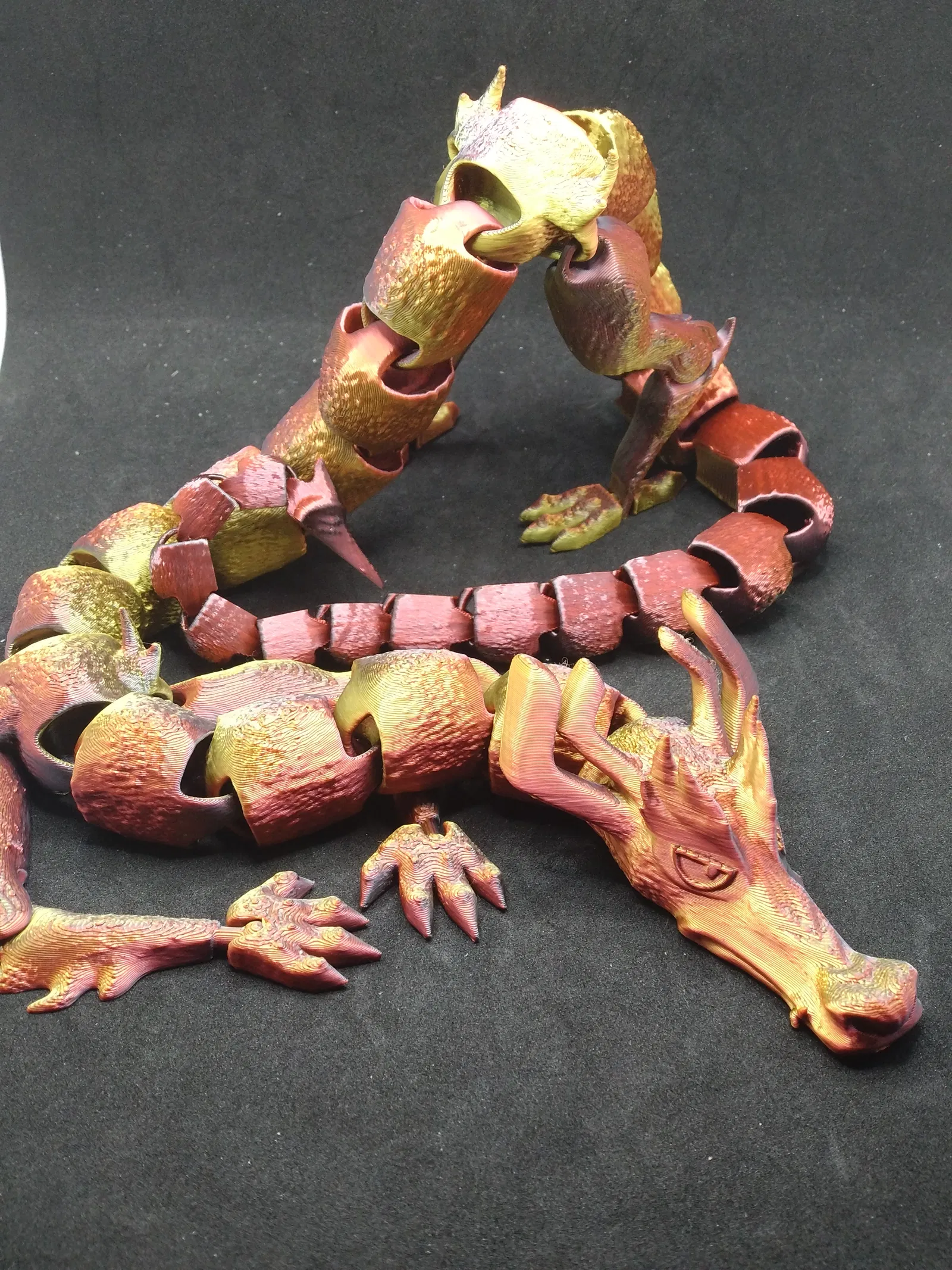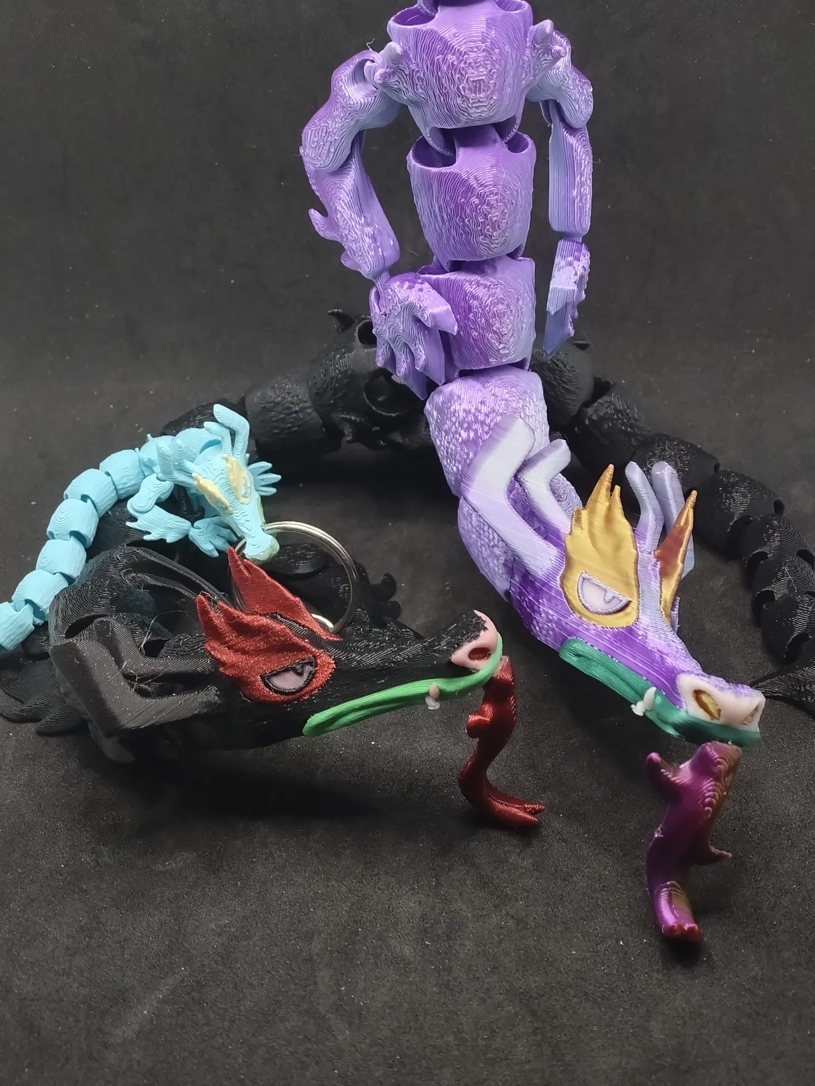 Mô hình Rồng Aku Khớp Nối với 12 khớp chi và 30 mắt xích thân, linh hoạt và không cần hỗ trợ. Khuyến nghị in phiên bản ngắn. Lưu ý về cài đặt in trên các loại vật liệu và máy khác nhau. Tệp này dành cho sử dụng cá nhân.