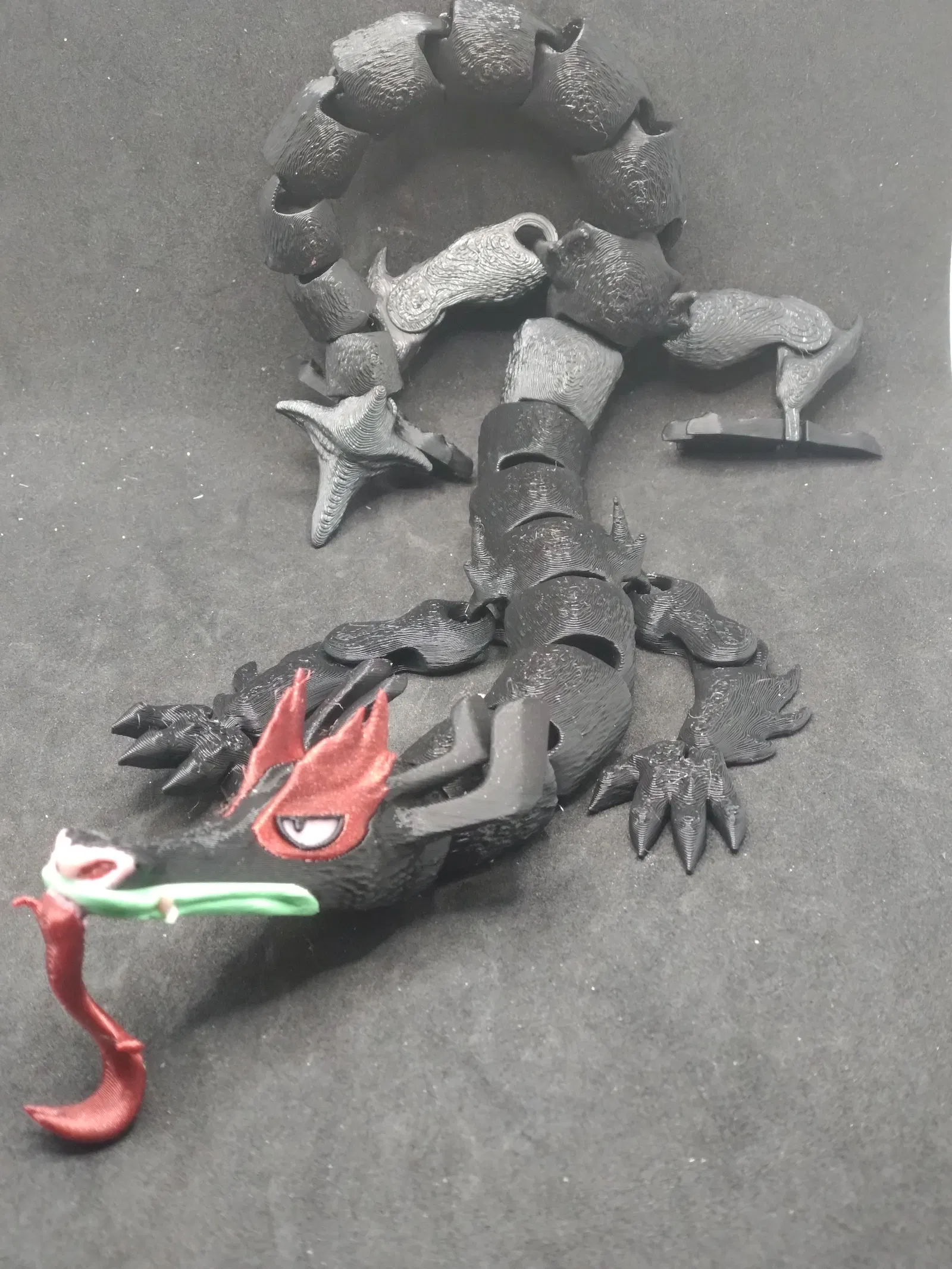 The Shogun of Sorrow có khớp nối với 12 khớp chi và lên đến 30 mắt xích thân trên kích thước dài nhất của nó. Nó không tự đứng được, do thân dài, nhưng nó là con rồng linh hoạt nhất của tôi cho đến nay! (Tôi đang làm giá đỡ cập nhật cho các con rồng của mình, vì vậy những con như Aku có thể đứng được. Hãy theo dõi tôi để biết khi nào tệp này có sẵn.)