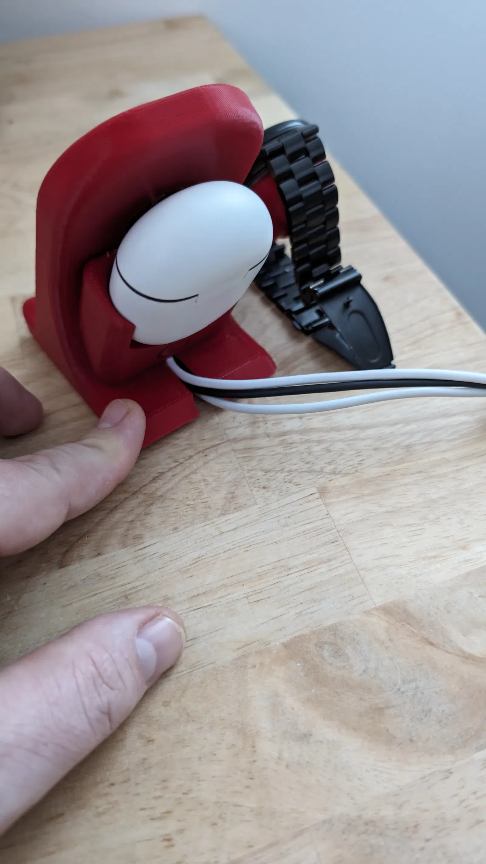 Tui có thiết kế một cái đế sạc cho văn phòng, cái này có thể để và sạc các thiết bị sau nè. Gọn gàng, để hết mọi thứ ở một chỗ.