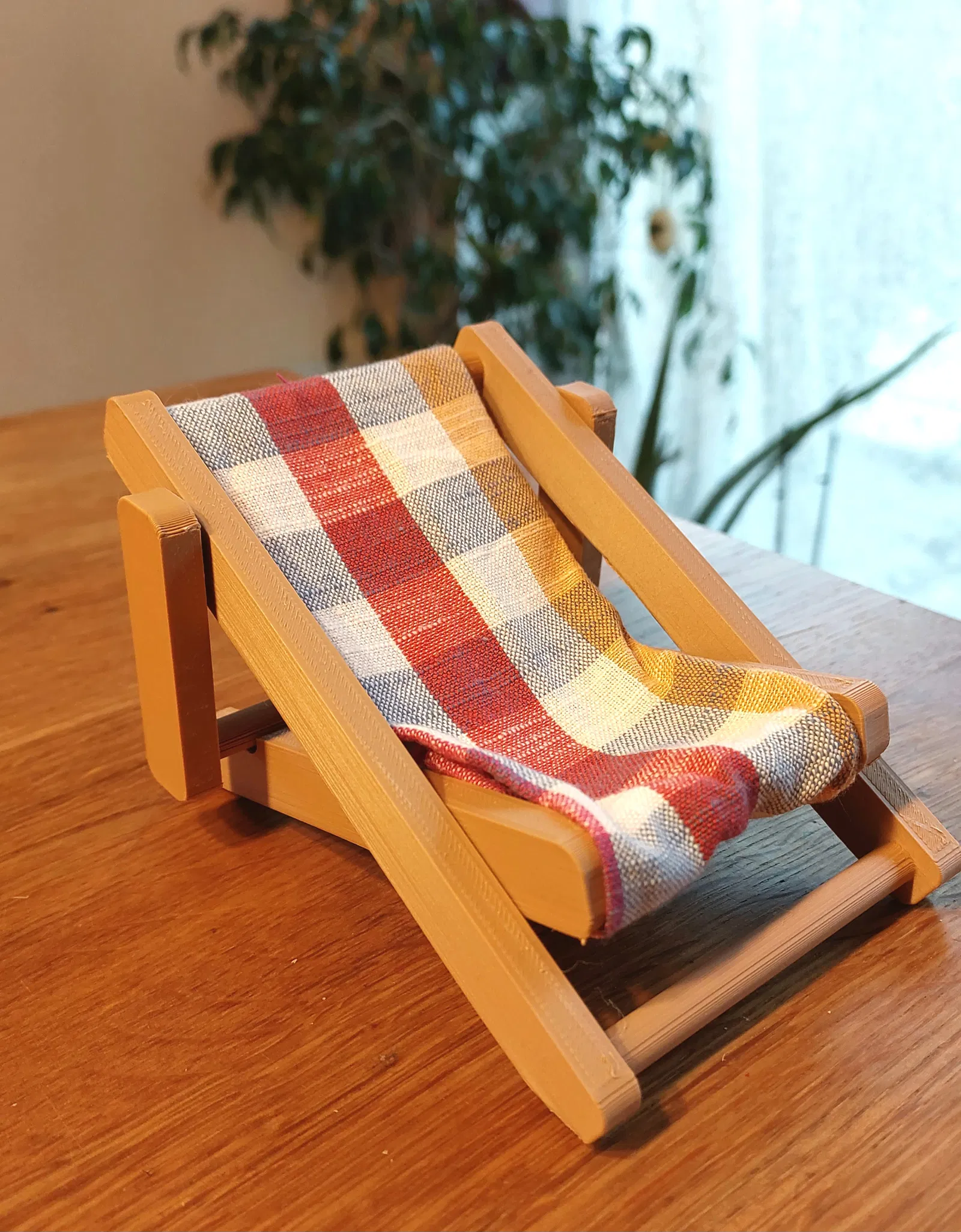 Ghế xếp nhỏ xinh cho ông già Noel hoặc búp bê khác. In liền khối, cần có support. Bạn phải dán một miếng vải vào ghế (khoảng 180mm x 45mm). Tôi dùng hai lớp vải và may chúng lại với nhau.