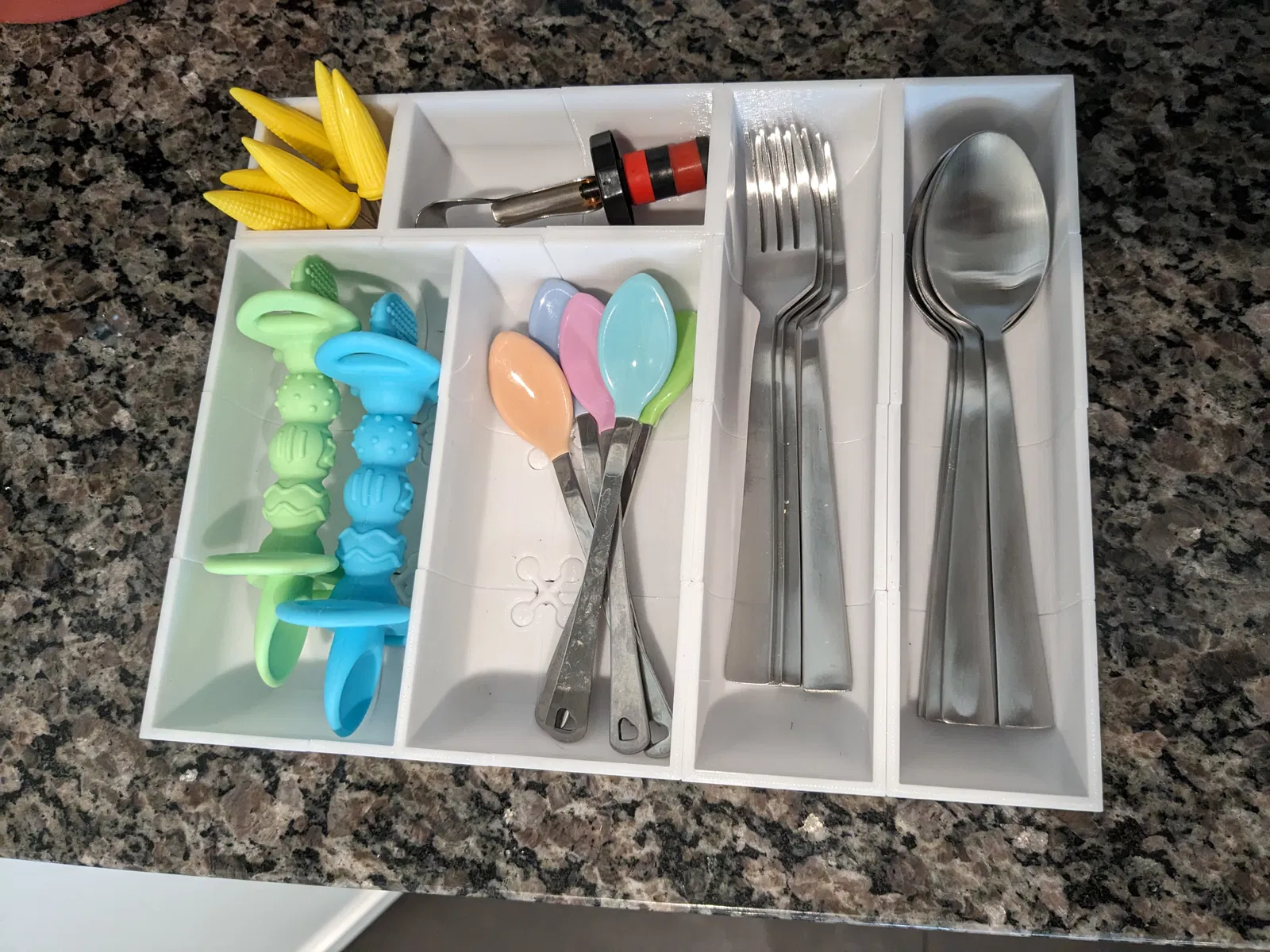 Bộ sắp xếp module này có đủ kích cỡ ngăn cho mọi thứ bạn cần, bạn có thể tự thiết kế cho phù hợp với nhu cầu sử dụng. Dùng để đựng dao kéo, dụng cụ, đồ dùng nhà tắm hay bất cứ thứ gì khác.