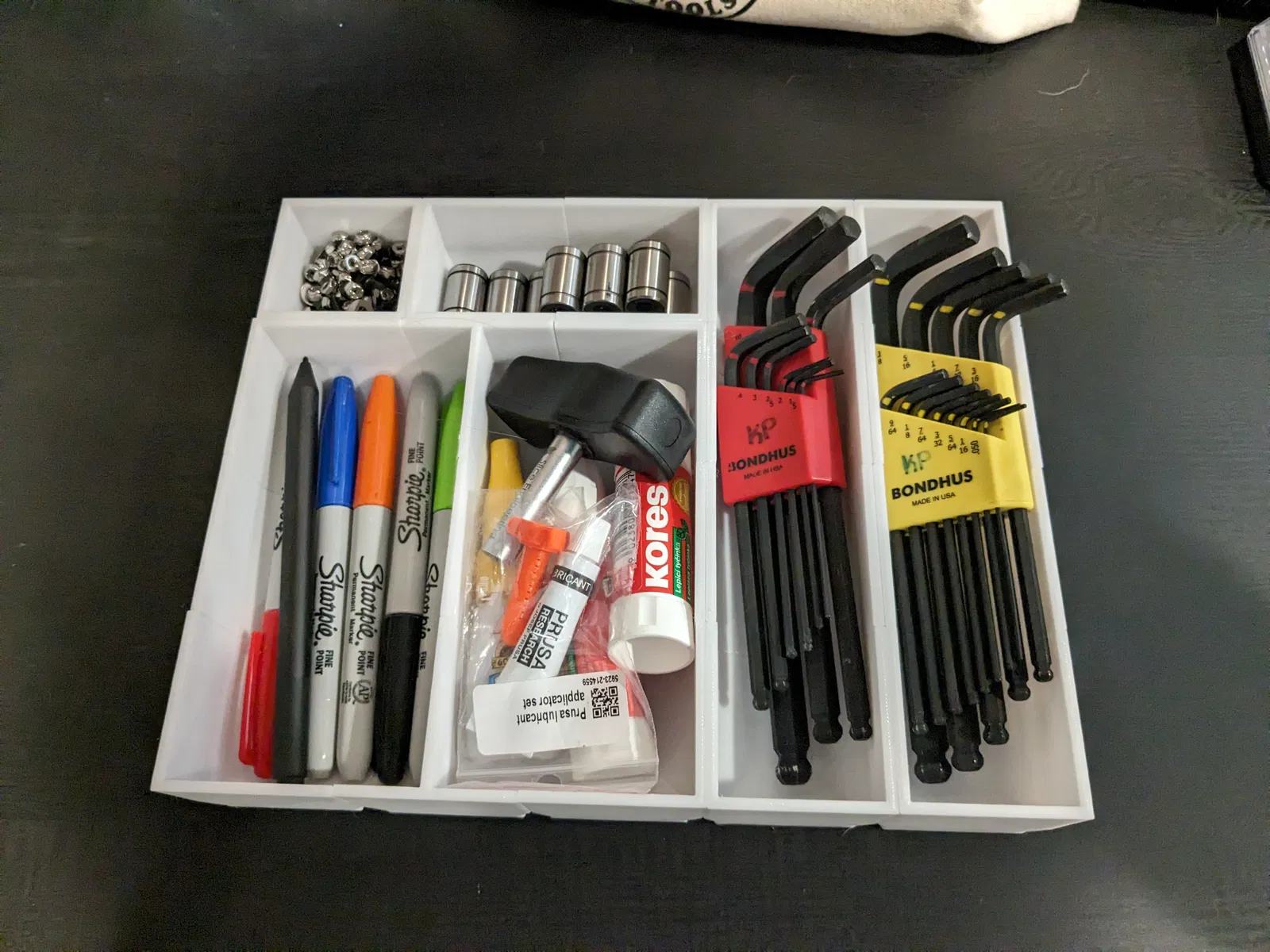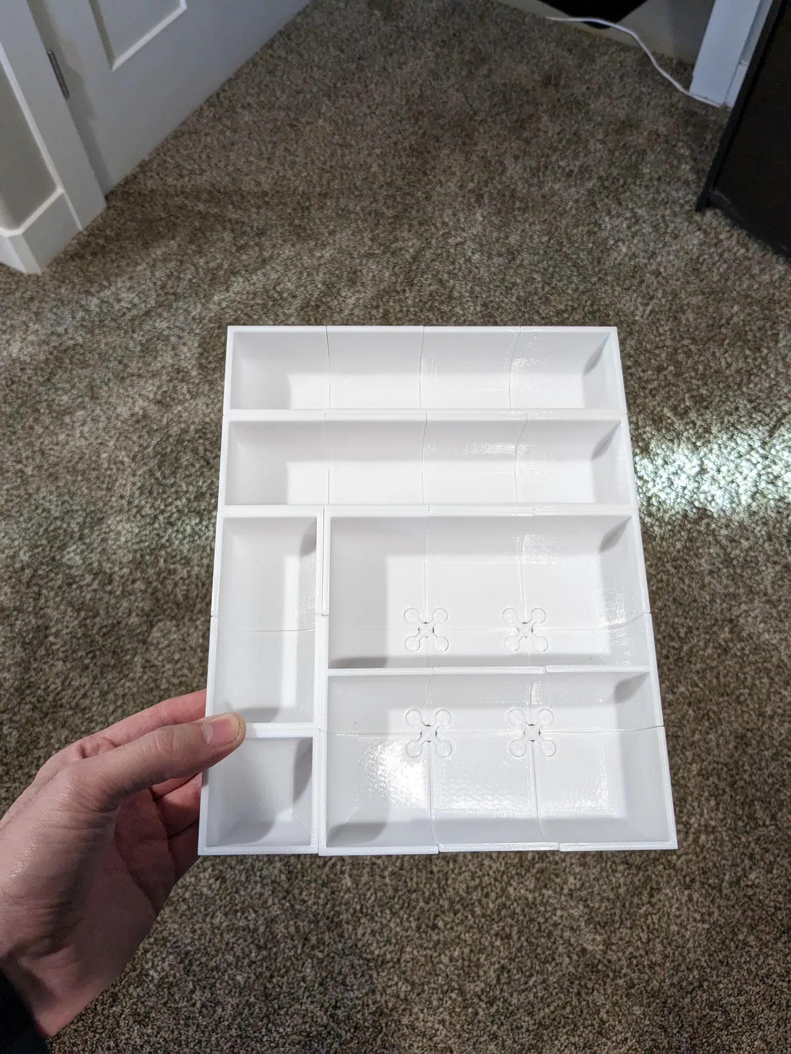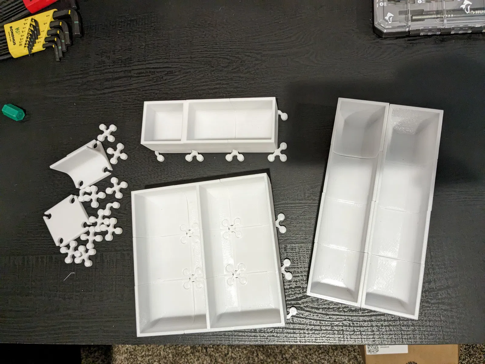 Mô hình này bao gồm 8 mảnh khác nhau có thể lắp ráp bằng 2 loại khớp nối để tạo thành các hộp / bộ sắp xếp dạng module. Tôi thiết kế nó cho cuộc thi dao kéo nhưng nó cũng có thể dùng tuyệt vời cho dụng cụ, phần cứng, đồ dùng phòng tắm, v.v.