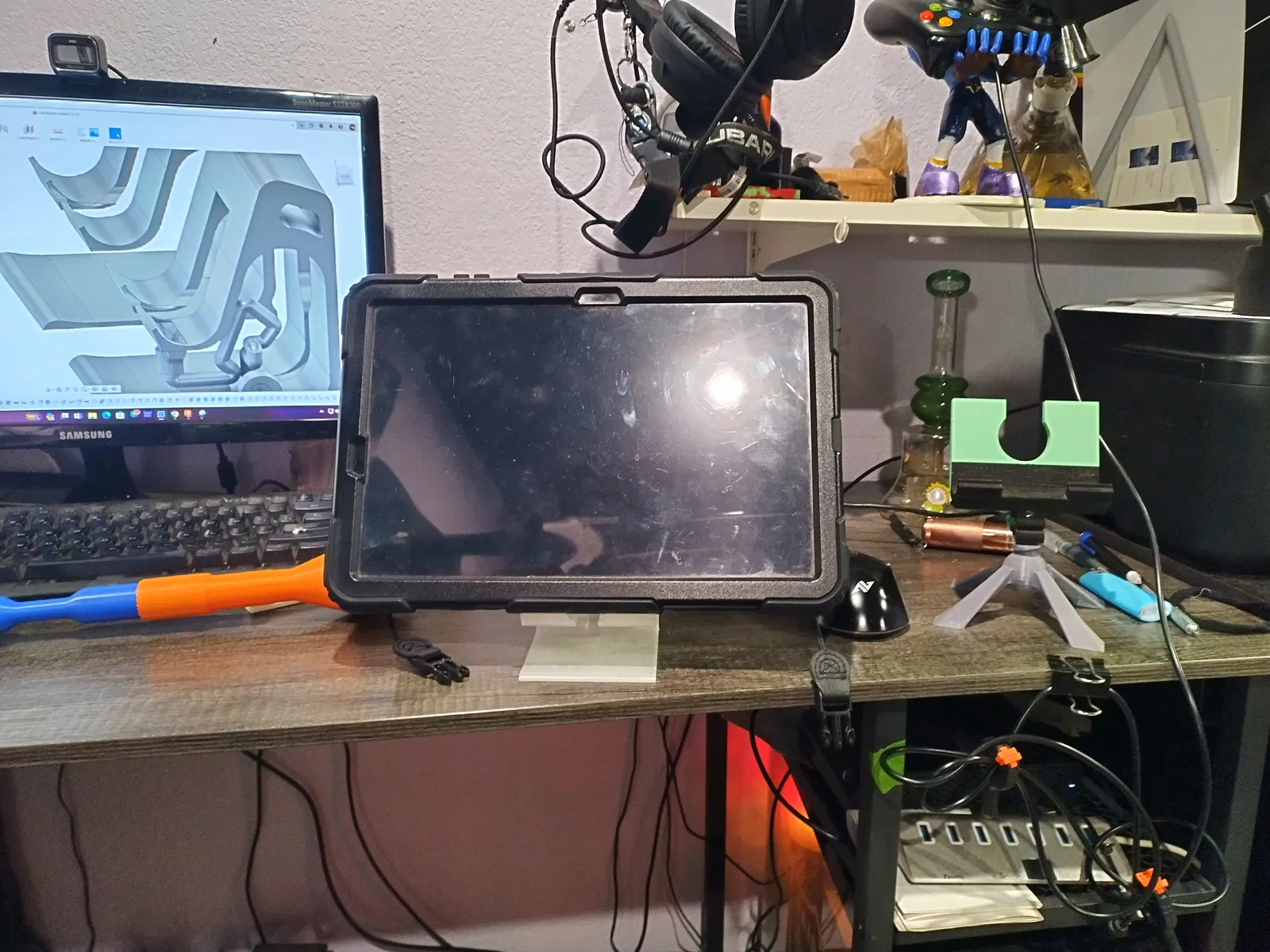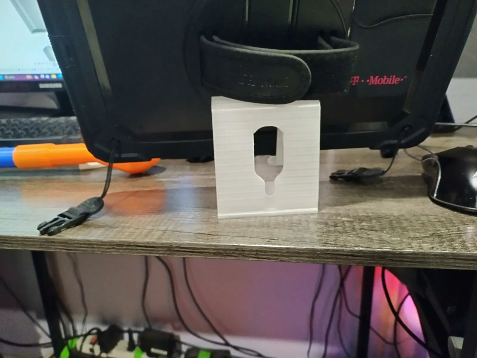 Đây là một trong những thiết kế đầu tiên, xài Fusion360 nè. Giá đỡ điện thoại/máy tính bảng này chỉ đứng vững ở chế độ ngang, muốn để chiều dọc thì phải scale lên tí nha. Dùng Elegoo Clear PLA+, in đặt nằm nghiêng, nhiệt độ đầu in 210C, bàn in 62C, có dùng support.