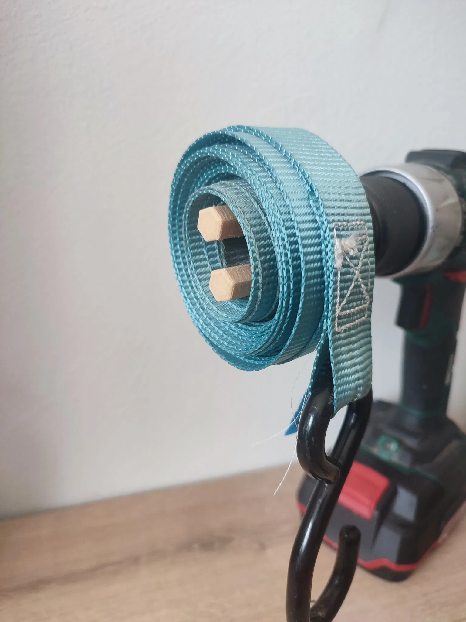 Chỉ cần một phụ kiện để dễ dàng cuộn dây đeo sau khi sử dụng. Làm cho súng trục vít để làm điều đó nhanh hơn.