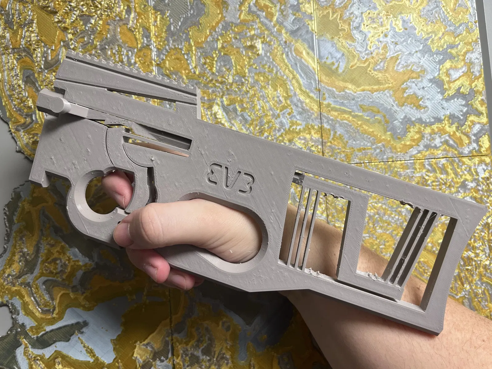 Súng P90 sử dụng lò xo đàn hồi để bắn phi tiêu in 3D. Link tải lại vì link cũ bị lỗi.