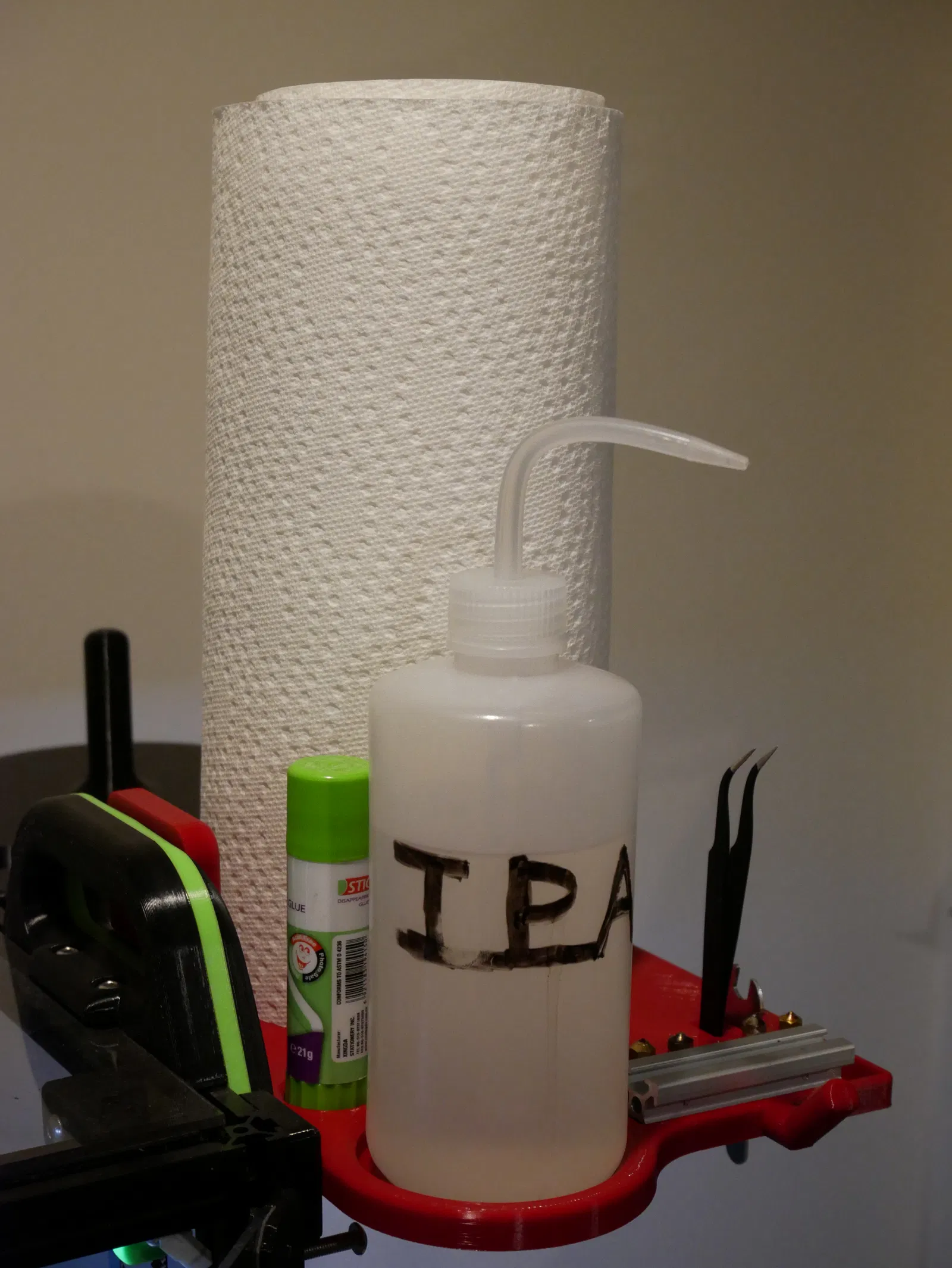 Tui khuyên bạn nên in cái giá đỡ góc phải với mật độ vật liệu độn (infill) cao, vì nó không phải là thứ cứng cáp nhất trên đời đâu. Nhưng nó đủ chắc để giữ vài cuộn giấy ăn đó.