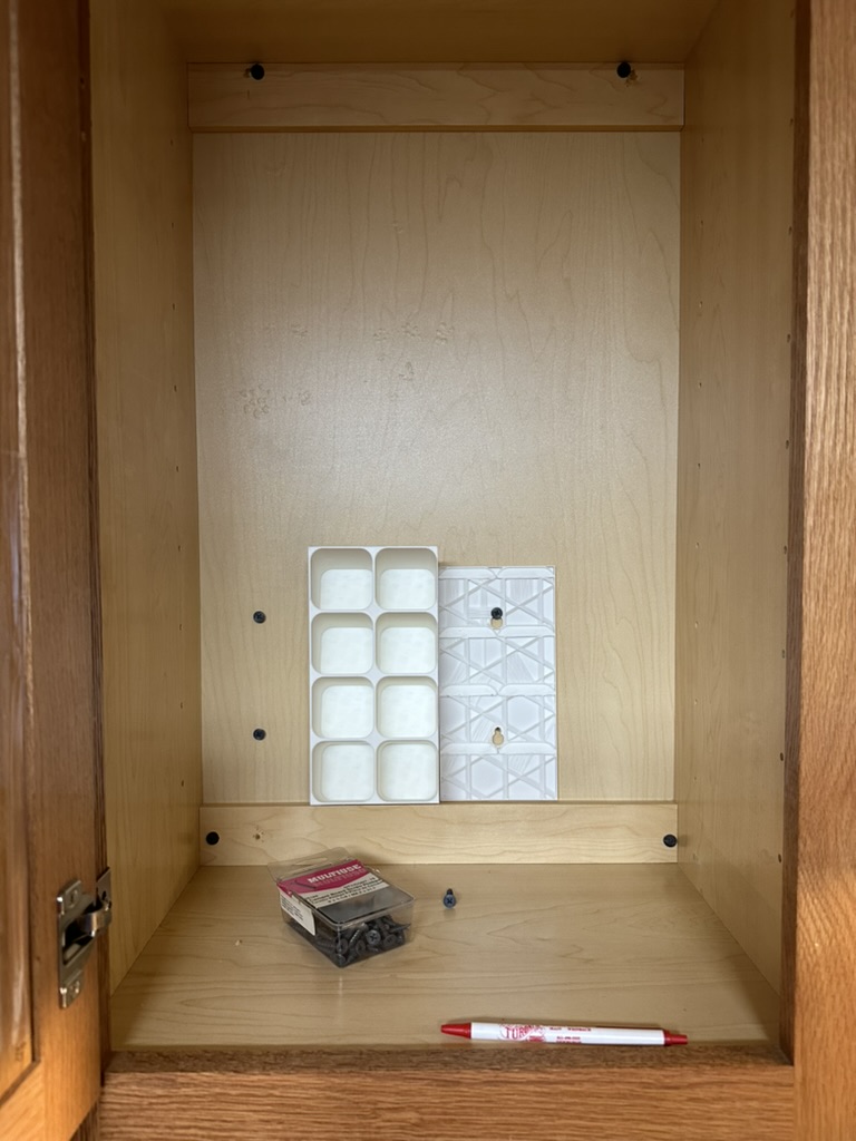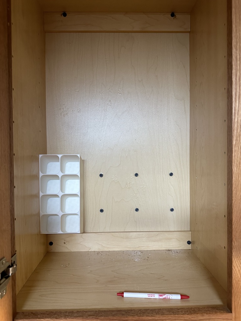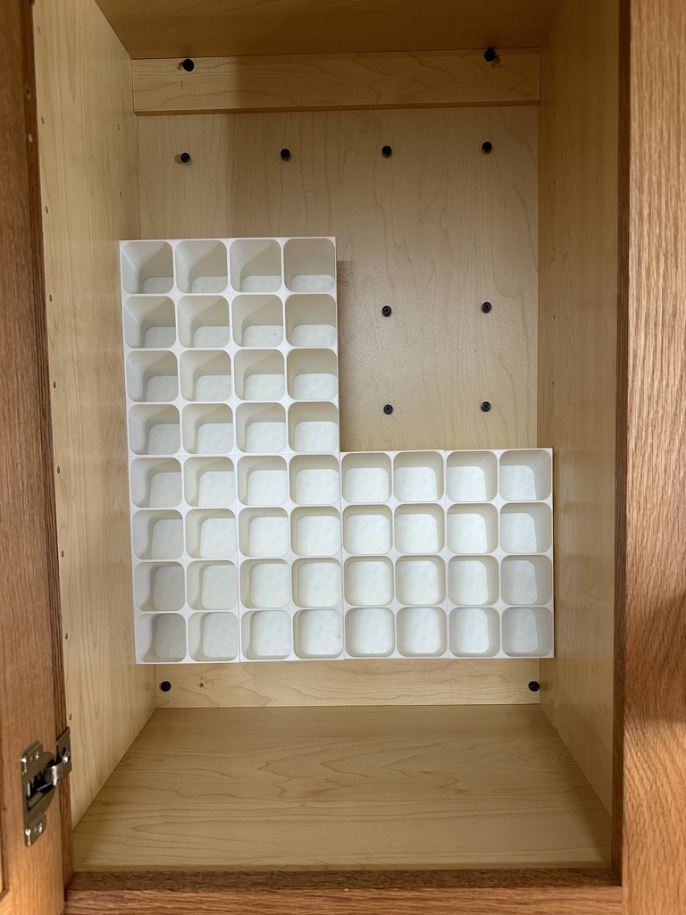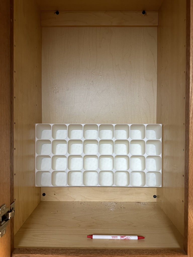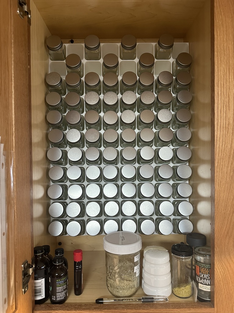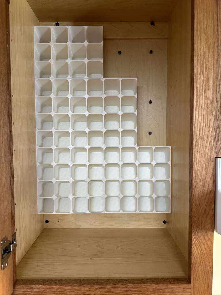 Phiên bản mod kệ gia vị để bàn, giờ có thể gắn bên trong tủ. Có thêm lỗ gắn, thiết kế xếp chồng khít và mẫu gắn đi kèm. Dù có vẻ chắc chắn, nên dùng ốc vít để cố định thêm.