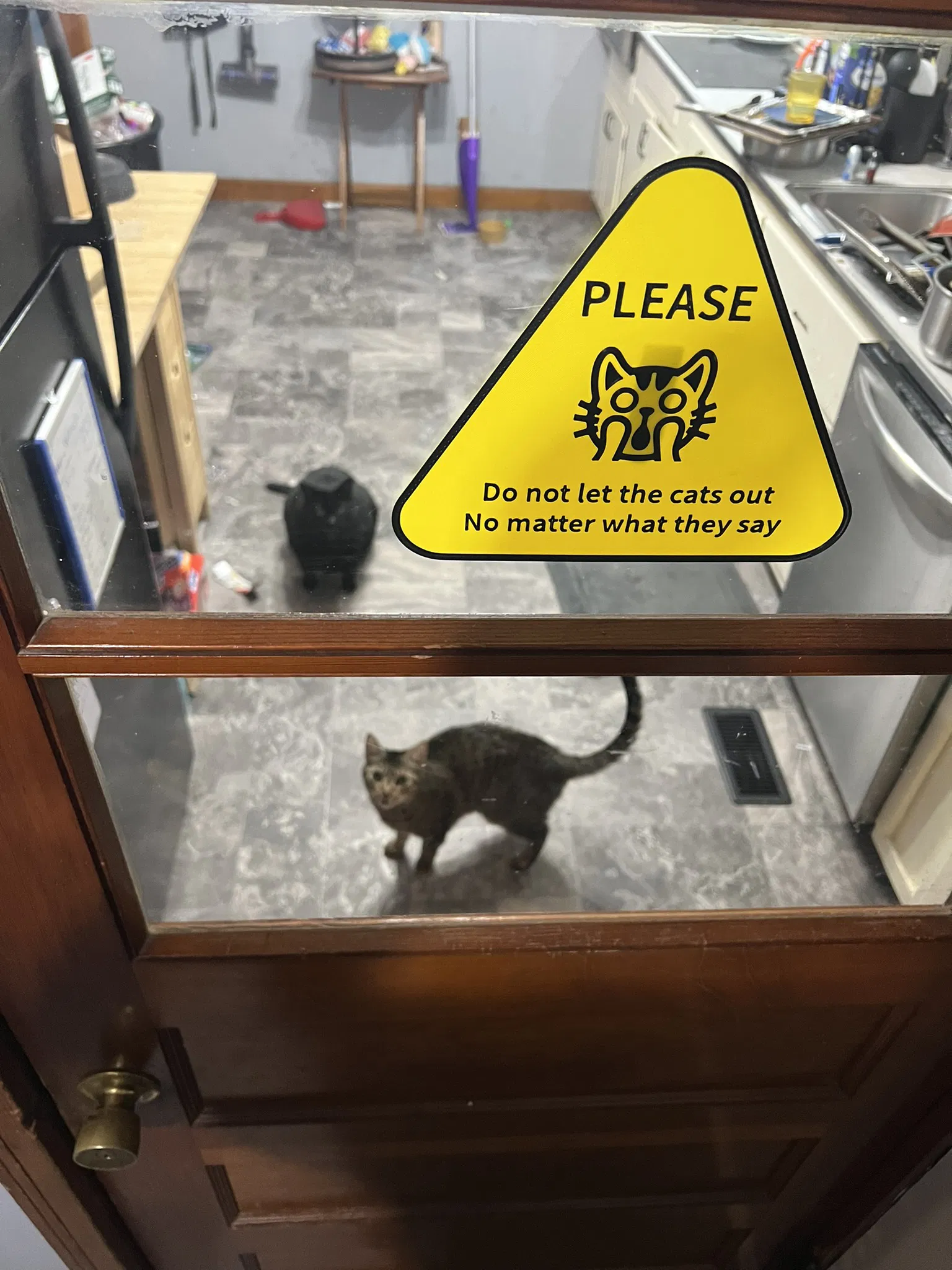 Biển báo "Cấm thả mèo ra ngoài".